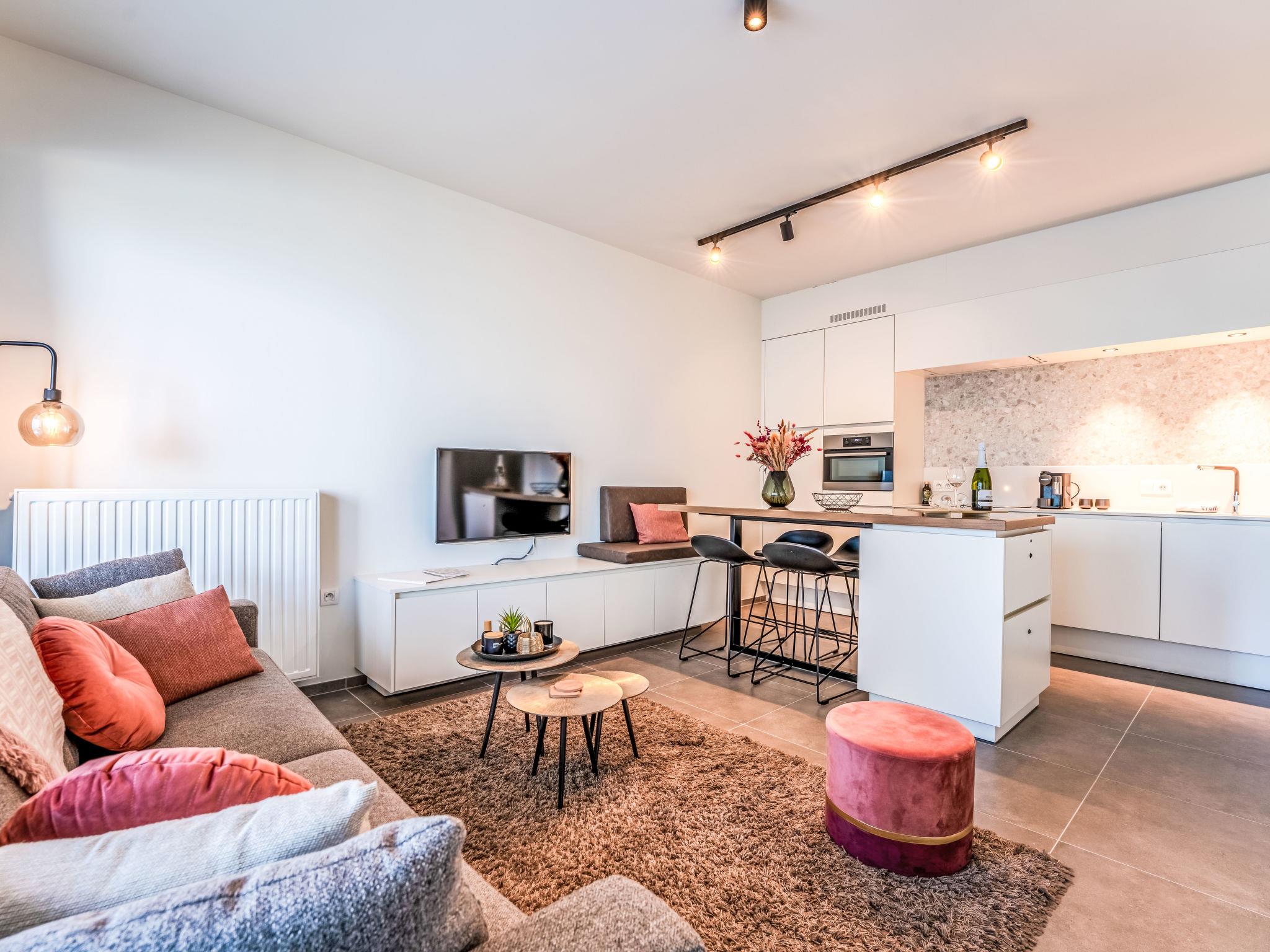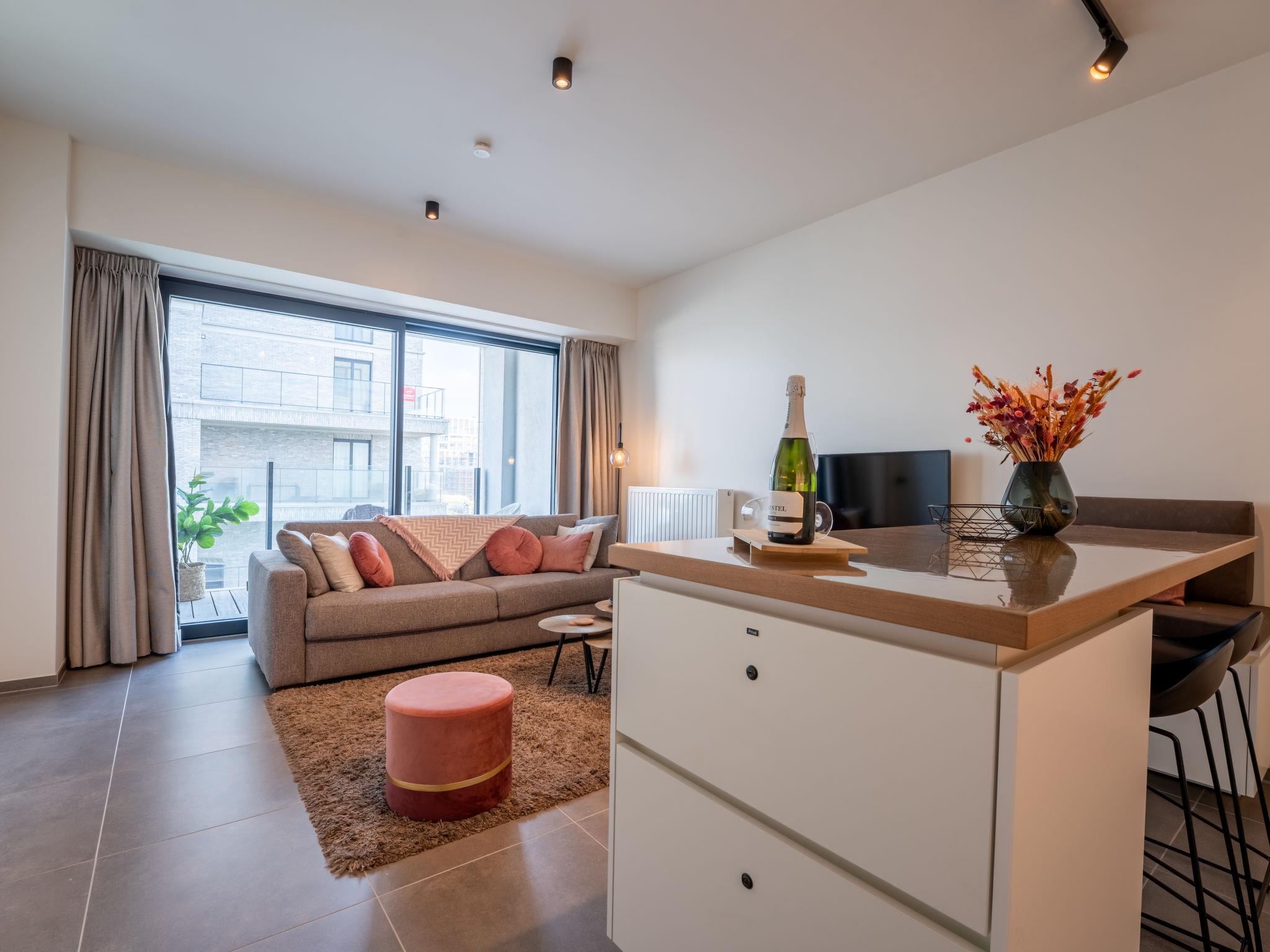 Modern, comfortable residence "Baelskaai 25", 14 storeys, built in 2020. In the district of Oosteroever, on the outskirts, 2 km from the centre of Oostende, 600 m from the sea, 600 m from the beach. For shared use: park, pond. Children's playground (slide, swing). In the house: bistro, lift, storage room for bicycles. Shop 300 m, supermarket 350 m, restaurant 80 m, 25 minute walk to the centre, tram "Vismijn" 600 m, bus stop "De Lijn" 1.5 km, railway station "NMBS Oostende" 4 km, ferry "Oosteroever - Visserskaai" 1 km, sandy beach "Oostende Strand" 740 m, nudist beach 5 km. Marina 1 km, golf course (18 hole) 7.5 km, surf school 2 km, tennis 4 km. Nearby attractions: Fort Napoleon - exposition / restaurant 900 m, trampolinepark 900 m, Sea Excursions - Captain Blue 150 m, Plopsaland De Panne 43 km, Domein Raversijde 10 km, James Ensor Gallery 2 km. The owner does not accept any youth groups. Neighbourhood highly sensitive to noise. Quietness and good behaviour expected.