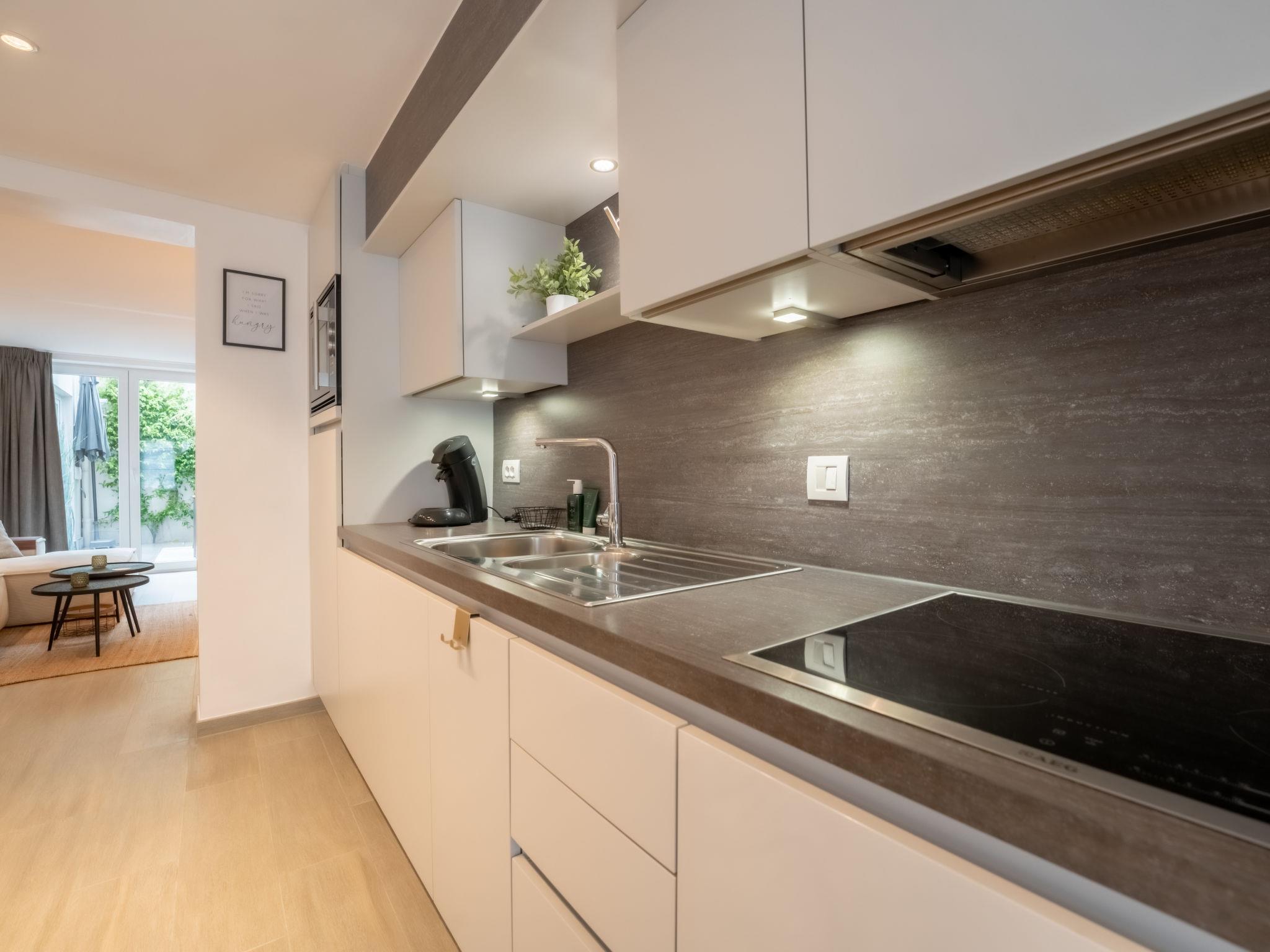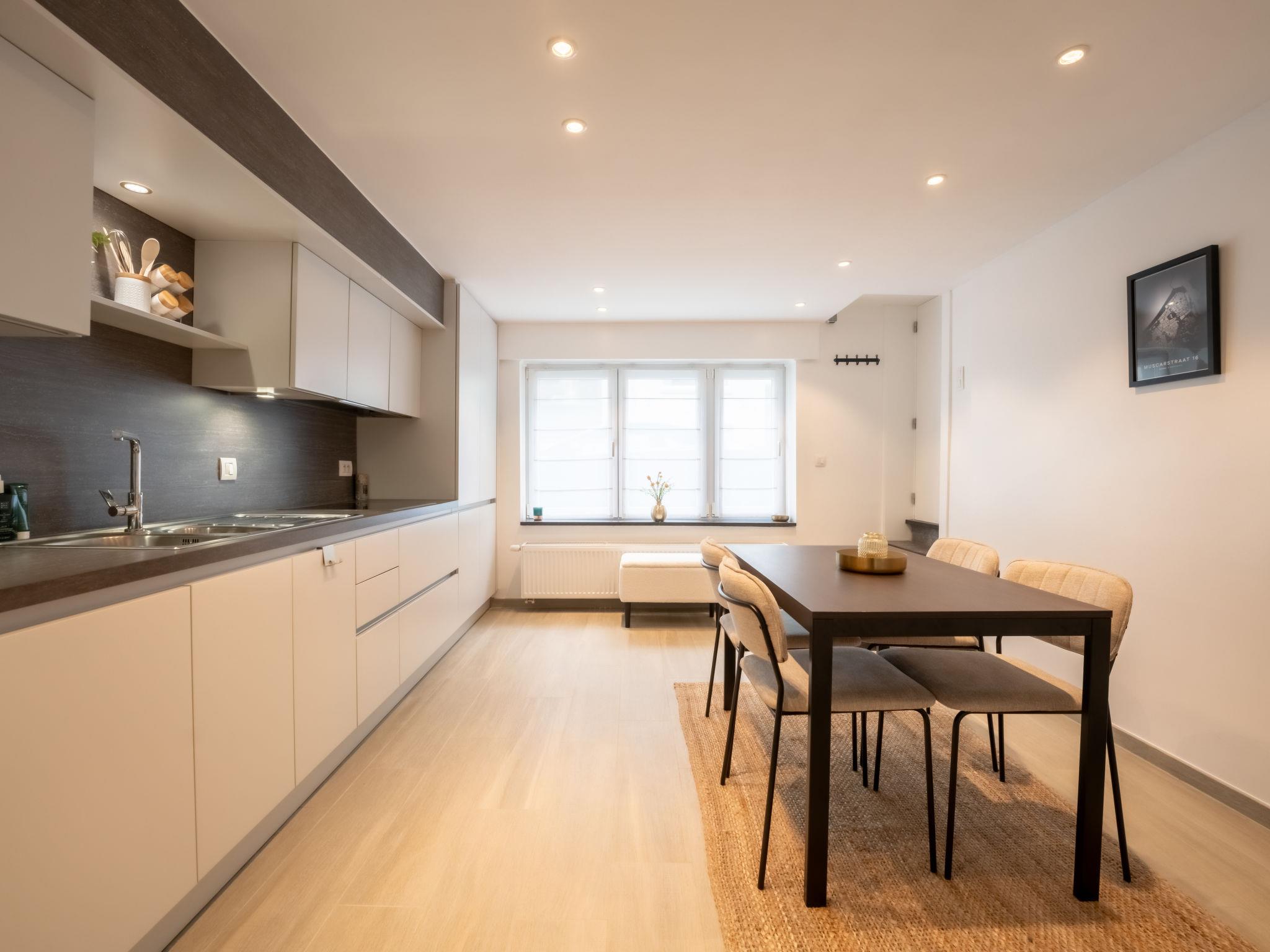 Residence "Villa George", 3 storeys, terraced. 800 m from the centre of Oostende, 500 m from the sea, 500 m from the beach. Grocery 100 m, supermarket 300 m, restaurant 200 m, bar 300 m, bakery 100 m, bus stop "De Lijn" 130 m, sandy beach "Oostende Strand" 500 m, indoor swimming pool 2 km. Golf course (9 hole) 1 km, surf school 900 m, tennis 500 m, minigolf 600 m. Nearby attractions: Wellington hippodroom 1 km, Kinepolis 1 km, Casino Oostende 1 km, Brugge 25 km, Plopsaland De Panne 30 km.