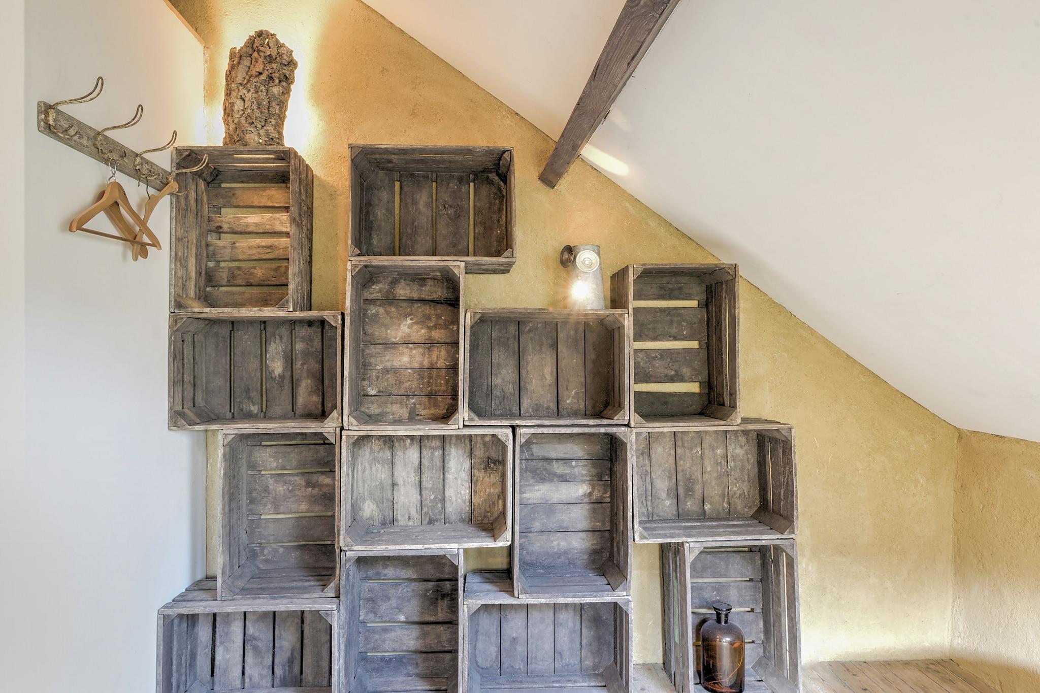 Stueetage: (sofastue(kakkelovn(træ), sofahjørne), spisestue(spisebord(6 personer), barnestol), åbent køkken(bar, kogeplade(Komfur med fire kogeplader, gas), elkedel, emhætte, kaffemaskine, ovn(grill-ovn)), badeværelse(bruser, håndvask, toilet), vaskerum (køle-fryseskab), veranda(spisebord(4 personer))) På 1. etage: (soveværelse(3x enkeltseng(dynebetræk, lagen, 90 x 200 cm)), soveværelse(dobbeltseng(dobbelt dynebetræk, dobbeltlagen, 180 x 200 cm)), soveværelse(2x enkeltseng(dynebetræk, lagen, 90 x 200 cm), tremmeseng), badeværelse(bruser, håndvask, toilet)) varme(træ), terrasse, have, havemøbler, solstole, grill