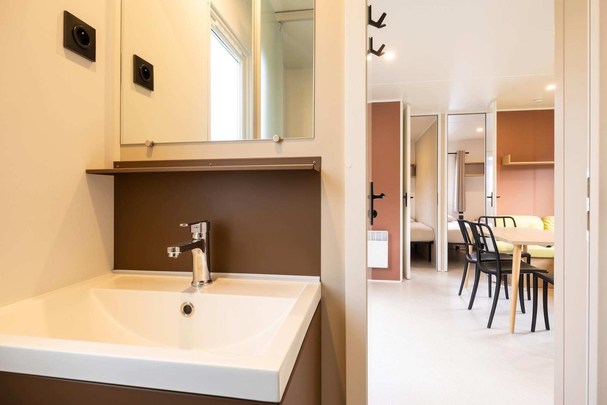 Oplev en afslappet og ubekymret ferie på Cordelia Lodge, et moderne mobilhome til seks personer beliggende i de naturskønne omgivelser i Ravels, Belgien. Denne stilfulde lodge er designet til komfort i enhver sæson og kombinerer et varmt og indbydende interiør med en moderne planløsning, der gør den ideel til familieferier eller ferier med venner. Den lyse, åbne stue flyder problemfrit over i et fuldt udstyret køkken med opvaskemaskine, elkomfur, mikrobølgeovn og Senseo-kaffemaskine, perfekt til fælles måltider og hyggelige aftener sammen. Integreret varme sikrer et behageligt ophold året rundt, uanset om I besøger huset om sommeren eller vinteren. Lodgen tilbyder tre komfortable soveværelser, herunder et med en dobbeltseng og to ekstra soveværelser med enkeltsenge, alle forberedt med puder og dyner til en god nats søvn. Et moderne badeværelse og et separat toilet giver ekstra bekvemmelighed, især for større grupper. Indenfor finder I også et fladskærms-tv og pålidelig Wi-Fi, så I kan slappe af eller holde forbindelsen, når I ønsker det. Træd udenfor i jeres private haveområde med et picnicbord, ideelt til morgenkaffe eller udendørs spisning. Som gæst har du også adgang til parkens fællesfaciliteter, som omfatter en naturlig svømmedam med sandstrand, en fiskedam, minigolf, en petanquebane, gang- og cykelstier samt åbne grønne områder, hvor du kan nyde roen i Kempen-regionen. Med sit komfortable design, indbydende udendørsarealer og adgang til fremragende parkfaciliteter tilbyder Cordelia Lodge en afbalanceret ferie, hvor afslapning, natur og samvær kommer naturligt.