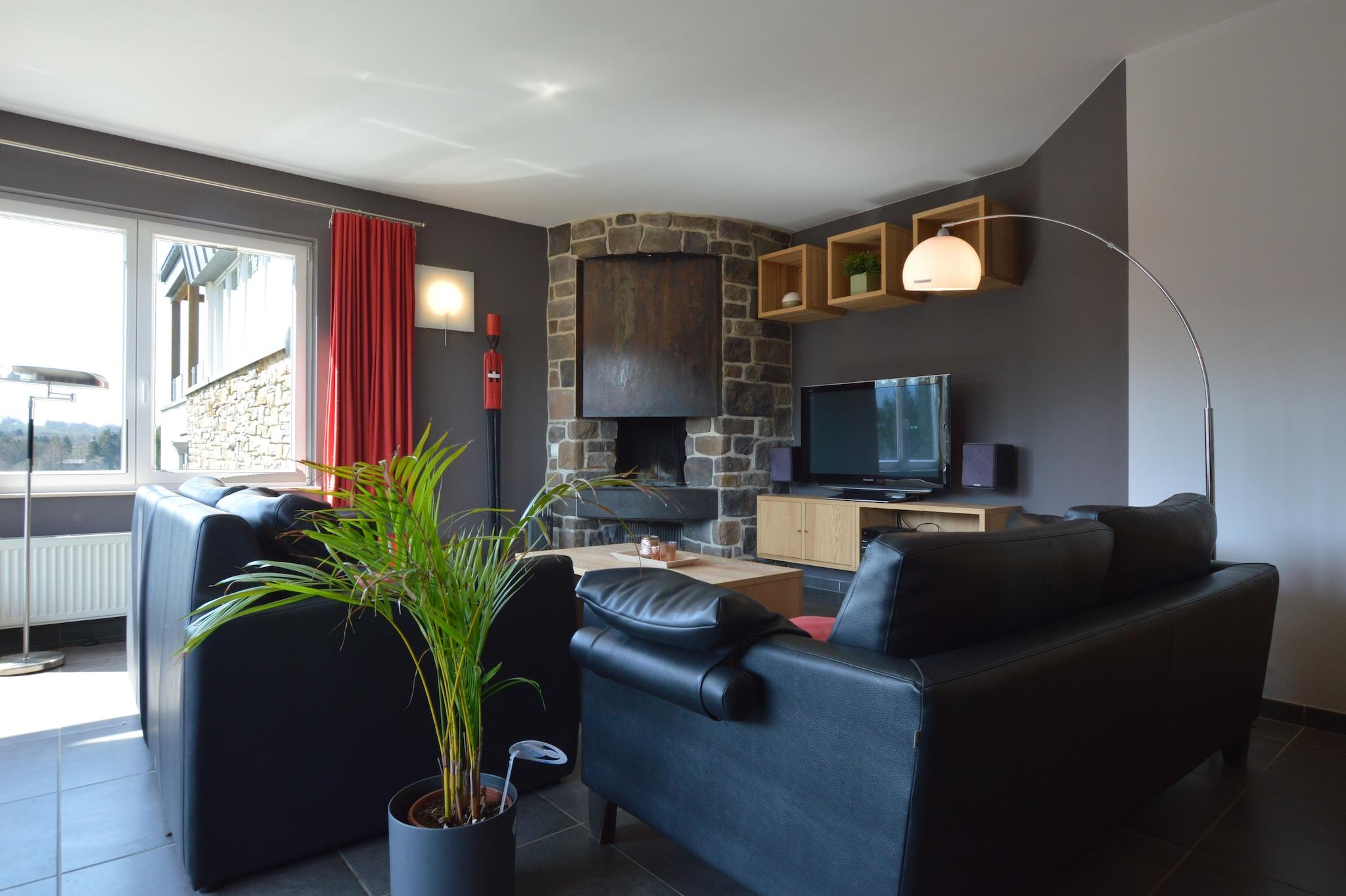 Denne elegante 2-værelses lejlighed ligger kun 100 m fra søen Robertville og tilbyder et fredfyldt og stilfuldt tilflugtssted for op til 4 gæster. Perfekt til familier eller par, lejligheden har centralvarme, en hyggelig pejs og en privat infrarød sauna, ideel til at slappe af efter en dag med udendørs eventyr. Opholds- og spisestuen i åbent plan er lys og indbydende med et fuldt udstyret køkken, en komfortabel stue og udgang til en terrasse med panoramaudsigt over naturen. Nyd en grill under stjernerne, eller slap af indendørs med moderne bekvemmeligheder som gratis WiFi, et fladskærms-tv og sikker parkering på stedet. Lejligheden har også 3 badeværelser, vaskemaskine og smagfuld indretning overalt. Beliggende nær vandrestier, skiløjper (3 km) og den charmerende landsby Malmedy (8 km), er dette hjem en perfekt base for at udforske High Fens-regionen. Restauranter er kun en kort gåtur væk, og både supermarkedet og byens centrum ligger inden for 400 meter. Uanset om du er her for at stå på ski, svømme eller blot slappe af, tilbyder denne perle ved søen en fredelig og velforbundet Ardennernes flugt2.