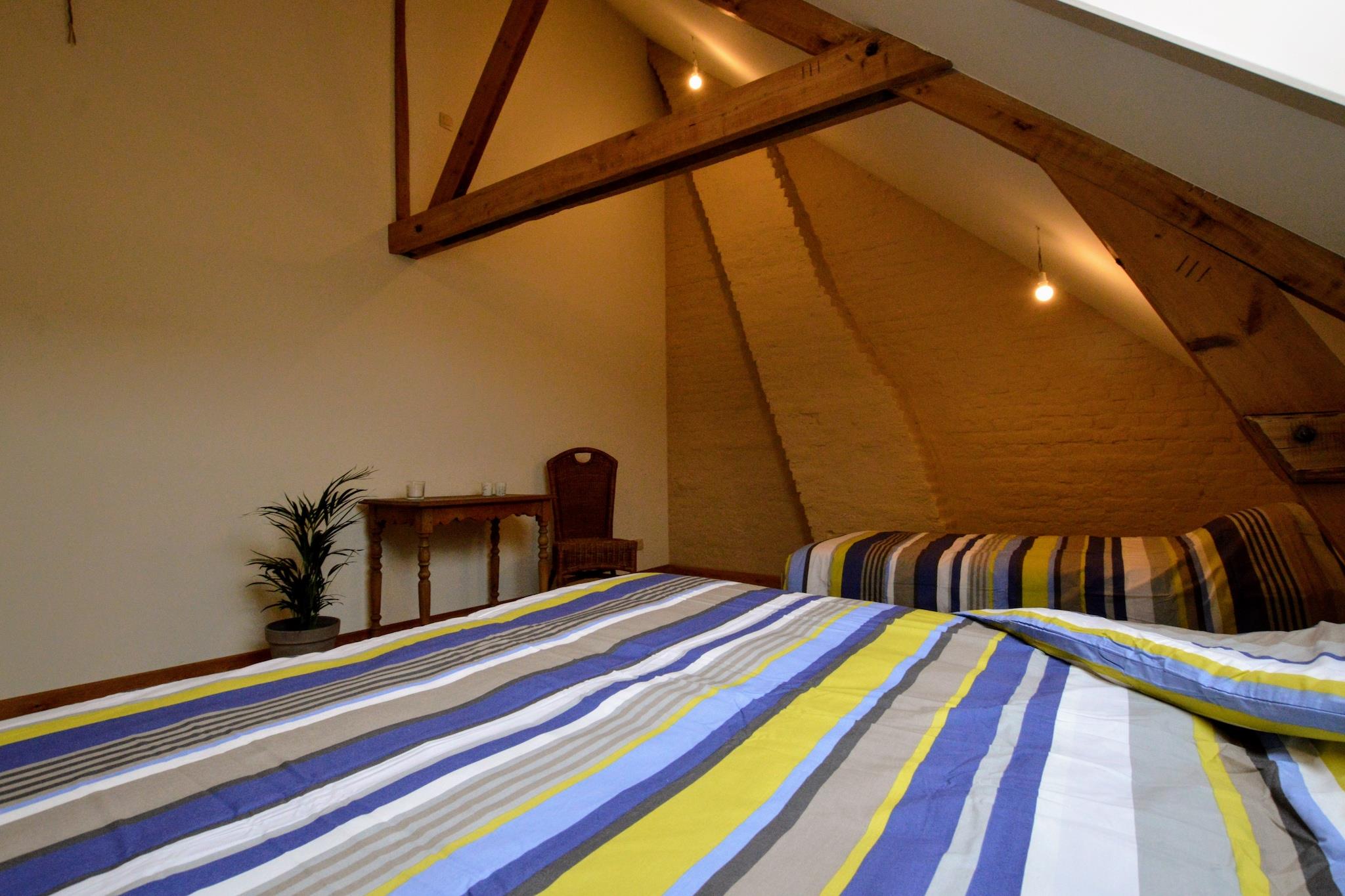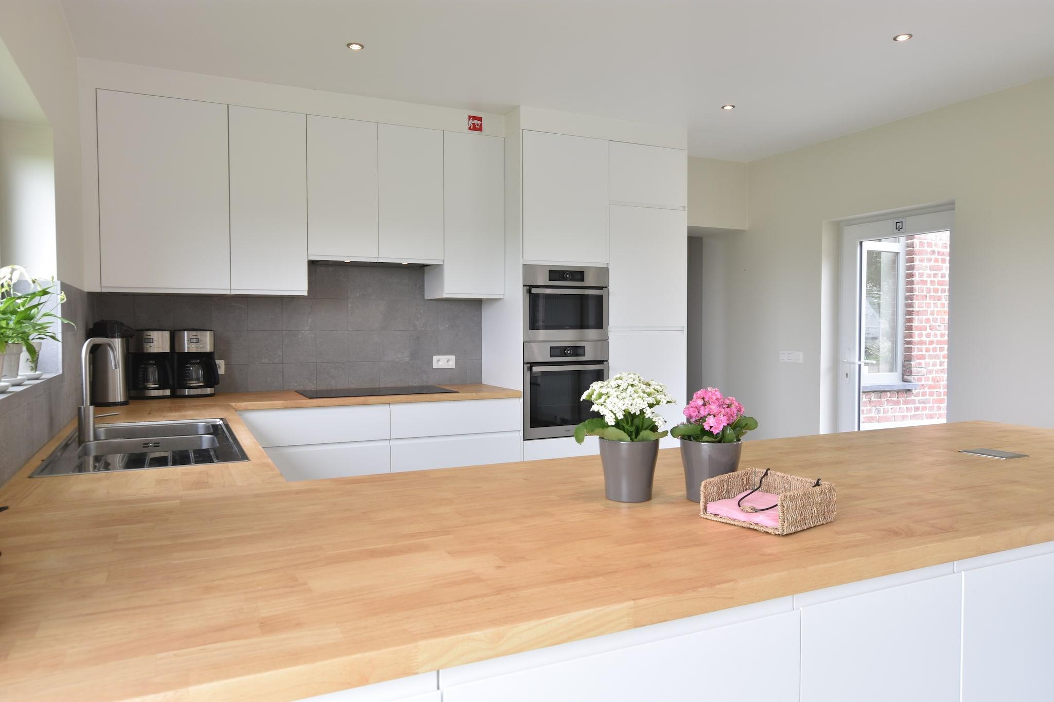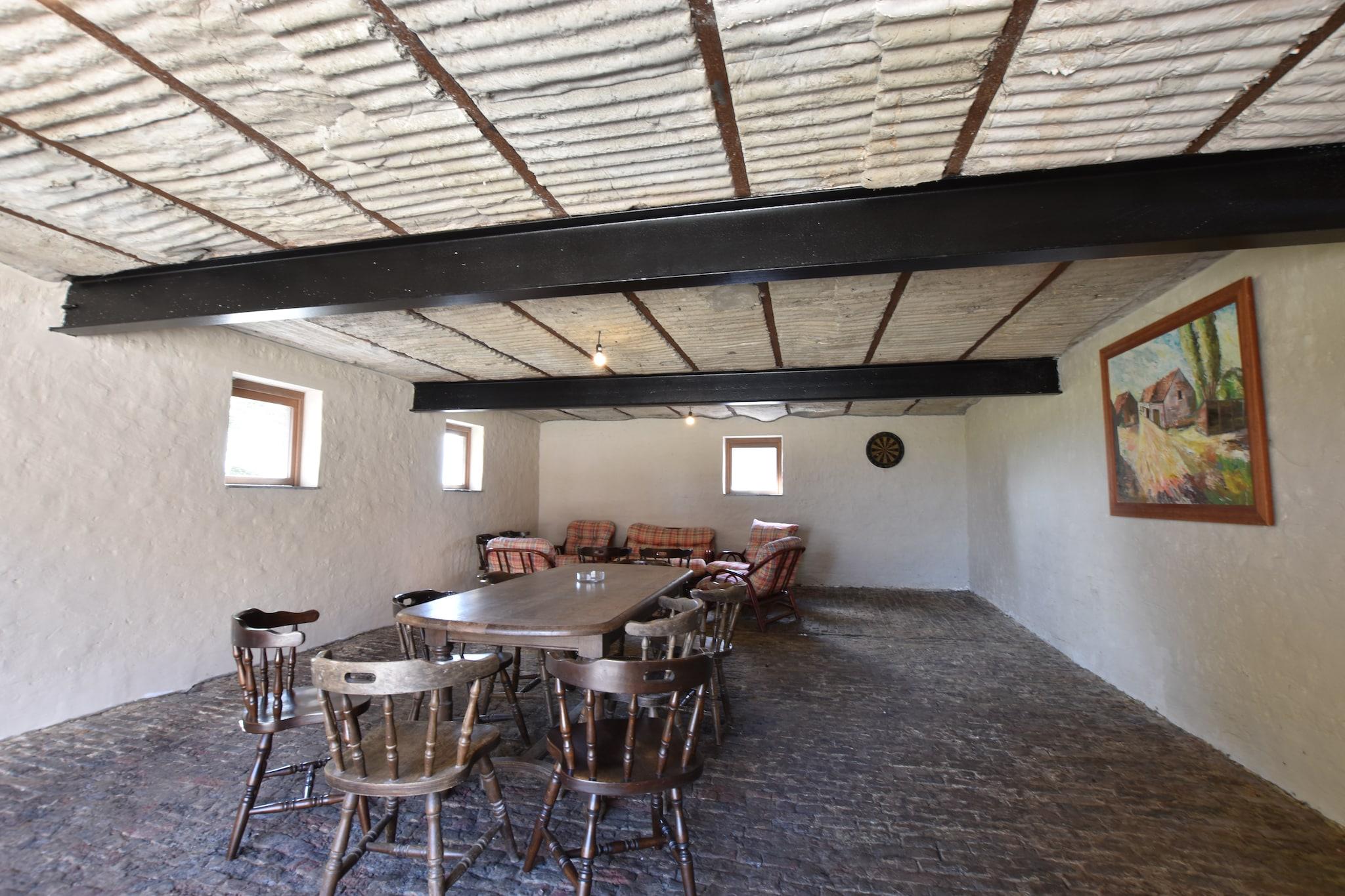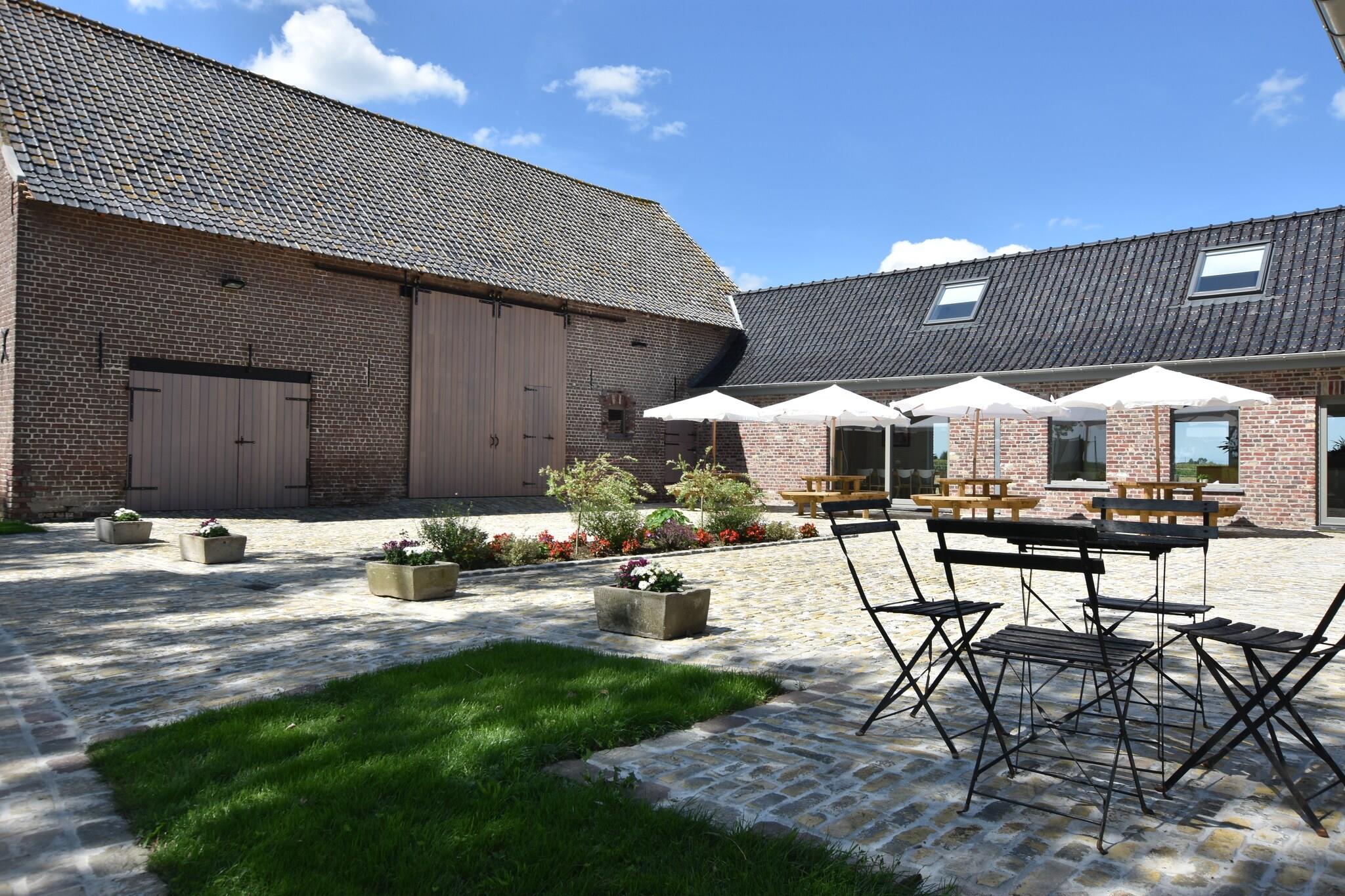Rummeligt familieretræte Dette palæ med 6 soveværelser i Poperinge kan rumme op til 22 gæster, hvilket gør det ideelt til store familier eller grupper. Hjemmet har en overdækket terrasse, en indhegnet have og en grill til afslappende måltider udendørs. Indenfor skaber det åbne køkken og rummelige opholds- og spiseområder et indbydende miljø til at samles, mens børns senge sørger for, at de små har det godt. Fritidsrummet, der er udstyret med et billardbord og bordtennis, tilføjer sjove muligheder for alle aldre. Nærliggende attraktioner og kultur Sandstranden ligger kun 25 km væk, perfekt til en dag med svømning og solbadning. Kulturentusiaster kan udforske Westhoek-regionen og første verdenskrigs vartegn, herunder Menin-porten i Ypres. Familier kan nyde forlystelsesparken Bellewaerde eller Plopsaland De Panne, og ølelskere kan besøge Saint-Sixtus Abbey for at opdage Westvleteren Trappist-bryggeriet. Lokale restauranter og supermarkeder ligger bekvemt 2 km fra huset. Udendørs sjov og bekvemmelighed Børn kan nyde trampolinen, dammen og boulebanen, mens voksne slapper af på liggestolene i den møblerede have. Den overdækkede terrasse er ideel til måltider i regn eller solskin, og sikker parkering er tilgængelig på stedet. Yderligere overnatningsmuligheder er tilgængelige for op til 27 gæster mod et ekstra gebyr, inklusive ekstra værelser og adgang til køkken. Med nærliggende offentlig transport og lufthavnen kun 50 km væk, balancerer dette palæ bekvemmelighed, rekreation og komfort for en mindeværdig grupperejse.