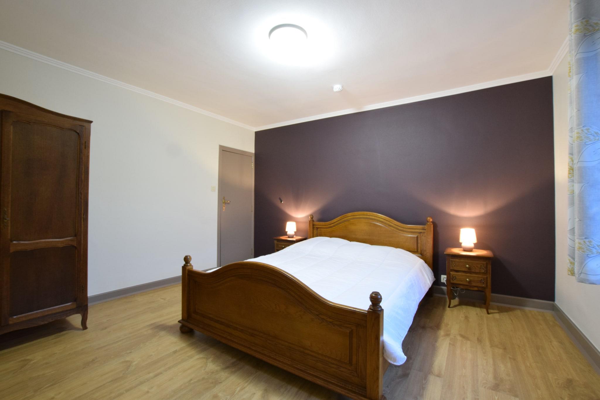 Nyd fuldstændig privatliv omgivet af grønne græsgange i dette rummelige 4-værelses feriehus i Gouvy, ideelt til op til 8 gæster, perfekt til store familier eller grupper. Slap af i den private sauna eller nyd måltider på balkonen med fredelig udsigt. Skoven kun 100 m væk er ideel til gåture, og der er mulighed for langrend 5 km fra boligen. Boligen byder på generøs indendørs og udendørs plads, herunder et opholdsrum til indendørs sjov. Udenfor skaber en stor have, en indhegnet dam og en solrig terrasse med grill en perfekt ramme for afslapning. En børneseng og høj stol er til rådighed for unge gæster, og parkering på stedet sikrer bekvemmelighed. Du finder basale dagligvarer i Spar Gouvy (6 km), flere butikker i Knauf Shopping Centre (8 km) og spisemuligheder som Le Cabas du Moulin og Hôtel Saint-Martin inden for 8 km. Fiskeelskere kan tage til Pêcherie Fond de Paradis (5 km), og Action & Fun Centre ligger 12 km væk for familieunderholdning.