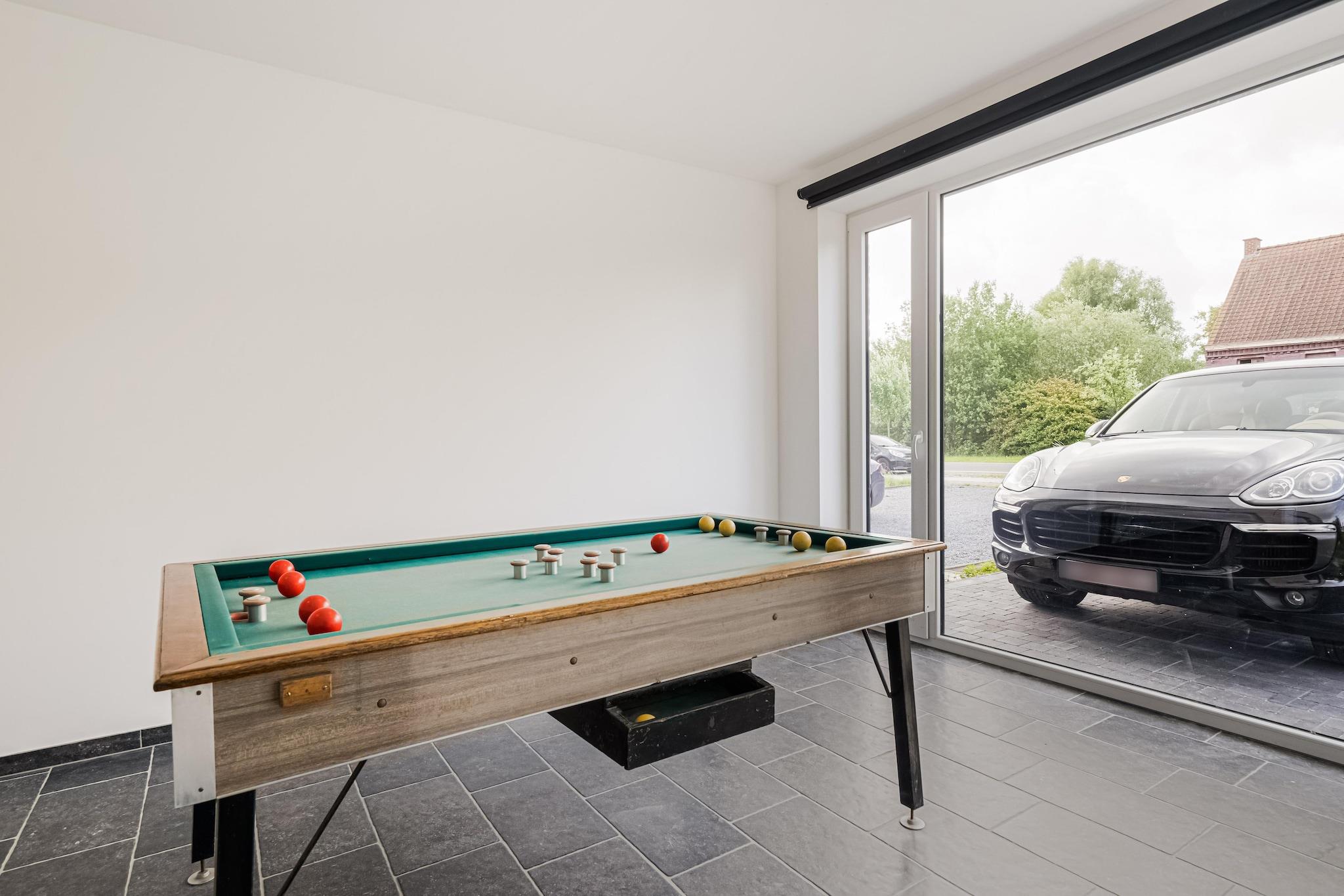 Dette komfortable nybyggede feriehus i hjertet af de flamske Ardennerne har et elegant interiør og en smuk have. Med sin fantastiske beliggenhed er den ideel til ferier med familie eller venner. I det nærliggende centrum af Ronse finder du alt hvad du behøver. Fra hyggelige butikker til hyggelige restauranter, et supermarked med daglige forsyninger og interessante seværdigheder såsom St. Hubert-domænet. Feriehuset ligger på grænsen mellem Flandern og Vallonien, og også en dag i det maleriske Gent er muligt, forudsat at du har en bil til din rådighed. Boligen er udstyret med et veludstyret køkken, og der er et opholdsrum med billard og bord fodbold. Nyd hyggelige eftermiddage på terrassen og tænd grillen for at skabe den perfekte sommeraften. Feriehuset er desuden udstyret med parkering.