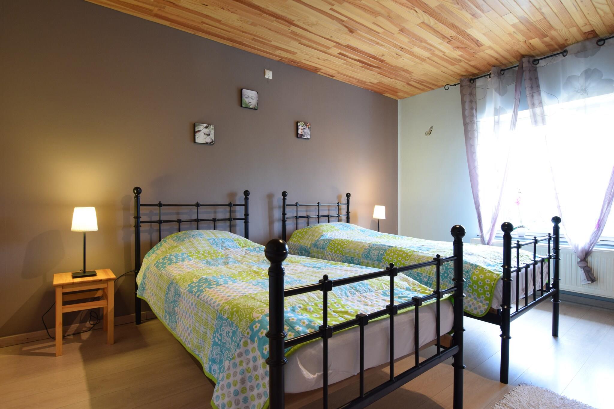 Beliggende i hjertet af de autentiske Ardennerne, dette charmerende 4-værelses feriehus i Tillet (Sainte-Ode) byder velkommen til op til 9 gæster, hvilket gør det ideelt for familier med børn eller en gruppe venner. Nyd fredelige morgener og afslappende aftener på den møblerede terrasse eller i den frodige have, omgivet af fredfyldte udsigter over Ardennernes landskab. Dette familievenlige hjem er omhyggeligt udstyret til gæster med små børn. Det tilbyder et babybadekar, forfriskningsbord, sikkerhedsbarrierer, en babyseng og endda en klapvogn efter anmodning. Byens centrum ligger kun 100 m væk, og en naturskøn sø til picnic ligger kun 5 km fra ejendommen. Indvendigt har huset et fuldt udstyret køkken og satellit-tv til din komfort og underholdning. Du finder flere turistattraktioner inden for en radius på 15 km, herunder Peterskirken i Bastogne, Basilica of Saint-Hubert og Le Mardasson Memorial. Luxembourg Lufthavn er kun en times kørsel, hvilket gør det nemt at rejse.