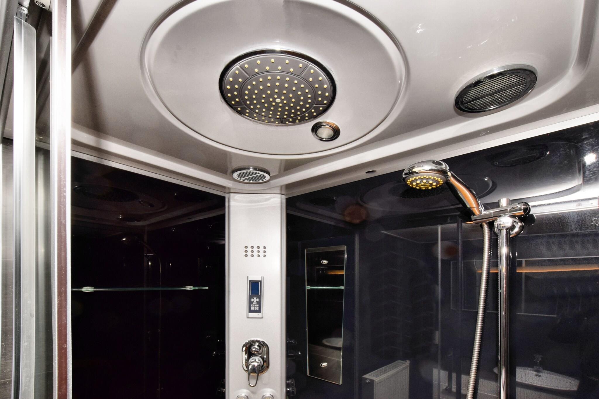 Stueetage: (Køkken(komfur(Komfur med fire kogeplader, gas), kaffemaskine, ovn, mikrobølgeovn, opvaskemaskine , køle-fryseskab), stue / spisestue(Fjernsyn, spisebord, sofahjørne), Soveværelse med badeværelse(dobbeltseng, bruser, håndvask), toilet, loungerum(sofahjørne, stereoanlæg, Bubble bath, bruser)) På 1. etage: (soveværelse(dobbeltseng), soveværelse(dobbeltseng), Soveværelse med badeværelse(dobbeltseng, bruser, håndvask, toilet), badeværelse(bruser, 2x håndvask, toilet)) Bubble bath, badekar eller bruser, Bubble bath, dampbruser, infrarød sauna, sauna, terrasse(privat), have(privat), havemøbler, grill, parkering, Parasol