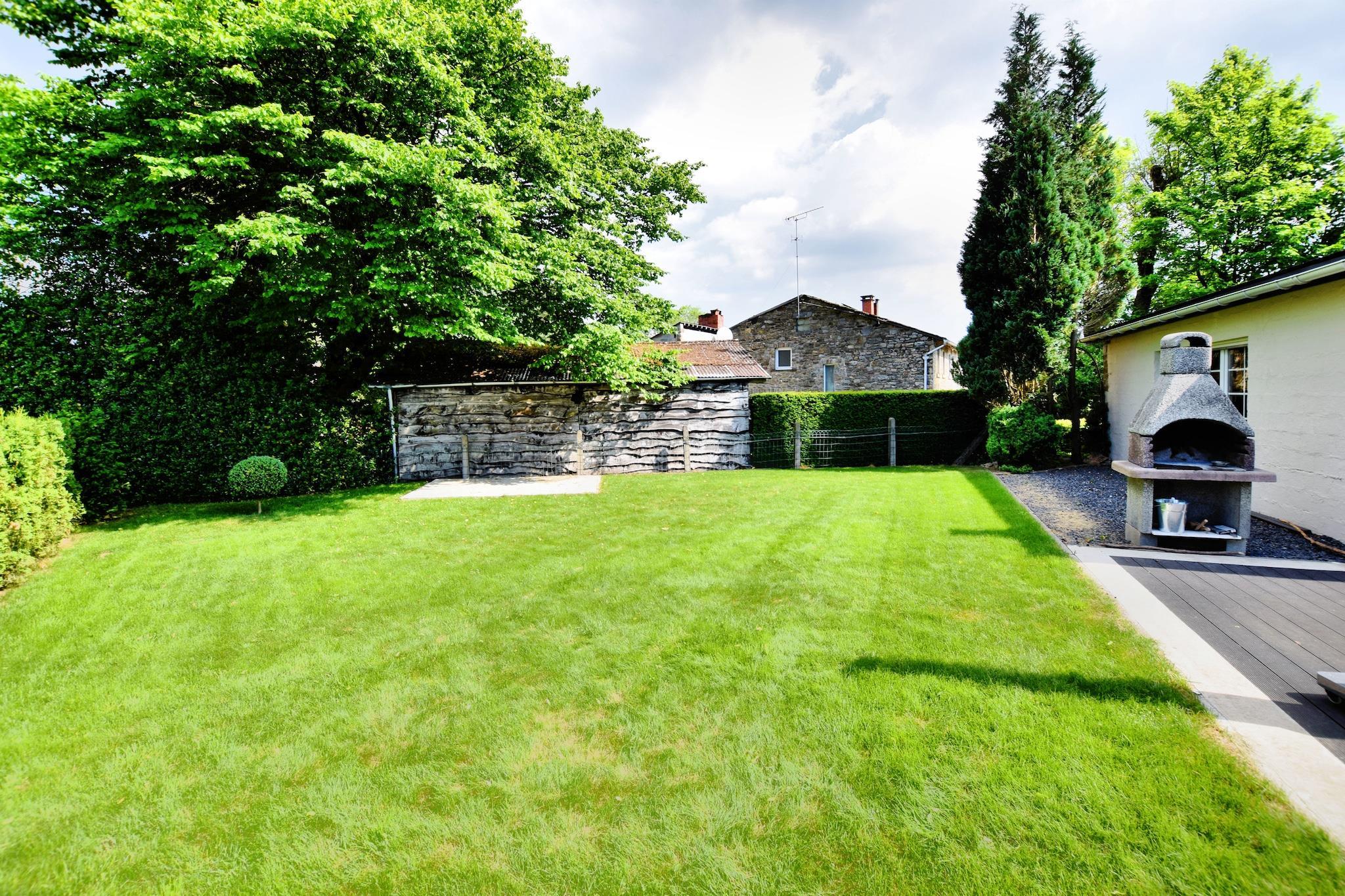 Denne indbydende villa i Samrée, La Roche-en-Ardenne tilbyder en fredfyldt flugt for familier eller små grupper. Beliggende i hjertet af Ardennerne, kun få skridt fra skovstier og tæt på Hauts Marais de Bellemeuse, en naturvandring gennem tørvemoser og skove. Gæster kan også udforske Château Féodal de La Roche, sejle i kajak ved Barrage de Nisramont eller vandre den panoramiske Celtic Trail of Berismenil, alt inden for rækkevidde. Villaen har fire soveværelser, herunder to med en-suite badeværelser, og en rummelig stue/spisestue med tv og komfortable siddepladser. Det åbne køkken er fuldt udstyret med gaskomfur, ovn, mikroovn og opvaskemaskine. Et dedikeret afslapningsområde omfatter et boblebad, dampbruser, infrarød sauna og traditionel sauna for ultimativ komfort. Udendørs kan du nyde en privat terrasse, indhegnet have, grill og havemøbler, perfekt til at slappe af efter en dag med eventyr. Nærliggende spisemuligheder omfatter L'Asphodèle, kun 1 km væk, kendt for sit raffinerede belgiske køkken, og La Fourchette Paysanne
