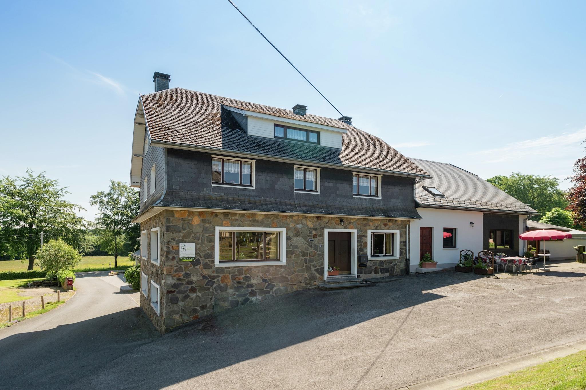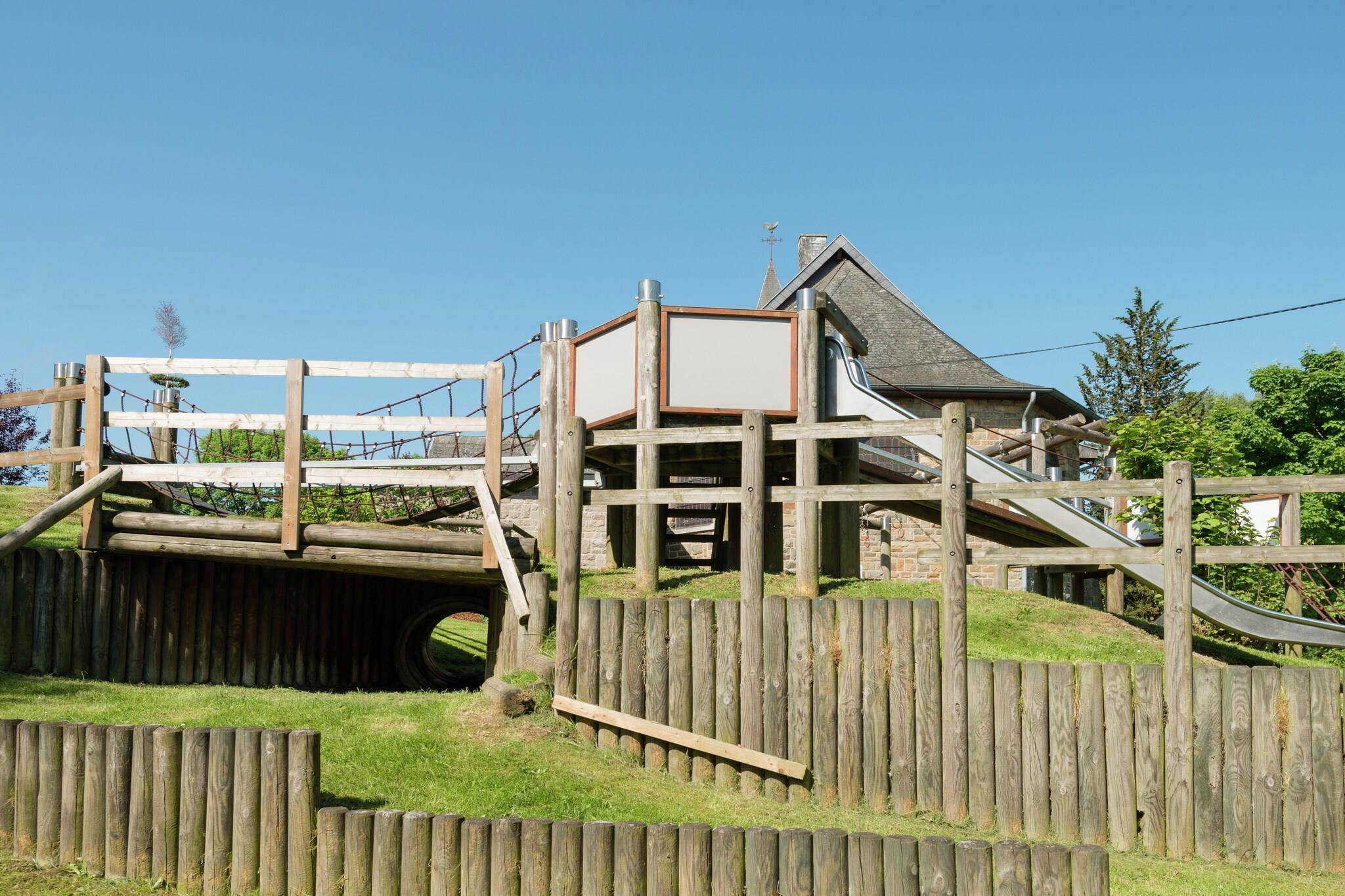 Beliggende nær Bütgenbach er dette rummelige 5-værelses feriehus i Amel perfekt til familier eller grupper på op til 10 gæster. Det er fordelt på to etager og har en privat terrasse med grill, møbleret have og oplyst udendørs legeplads med sandkasse og legeredskaber, ideelt for børn. Indendørs kan du nyde bordfodbold, fitnessudstyr og indendørs legetøj. Hjemmet indeholder 4 børnesenge, 3 højstole og privat parkering. Søen og den offentlige swimmingpool ligger kun 4 km væk, mens supermarkeder og restauranter ligger 3 km derfra. Der er mulighed for langrend 5 km væk, og der er kun 300 m til offentlig transport. Udforsk nærliggende byer som Liège, Spa, Malmedy og Stavelot, eller nyd naturskønne vandre- og cykelture gennem Ardennerne. Uanset om du griller på terrassen eller slapper af efter en dag med eventyr, tilbyder dette hjem en perfekt blanding af komfort, sjov og natur.