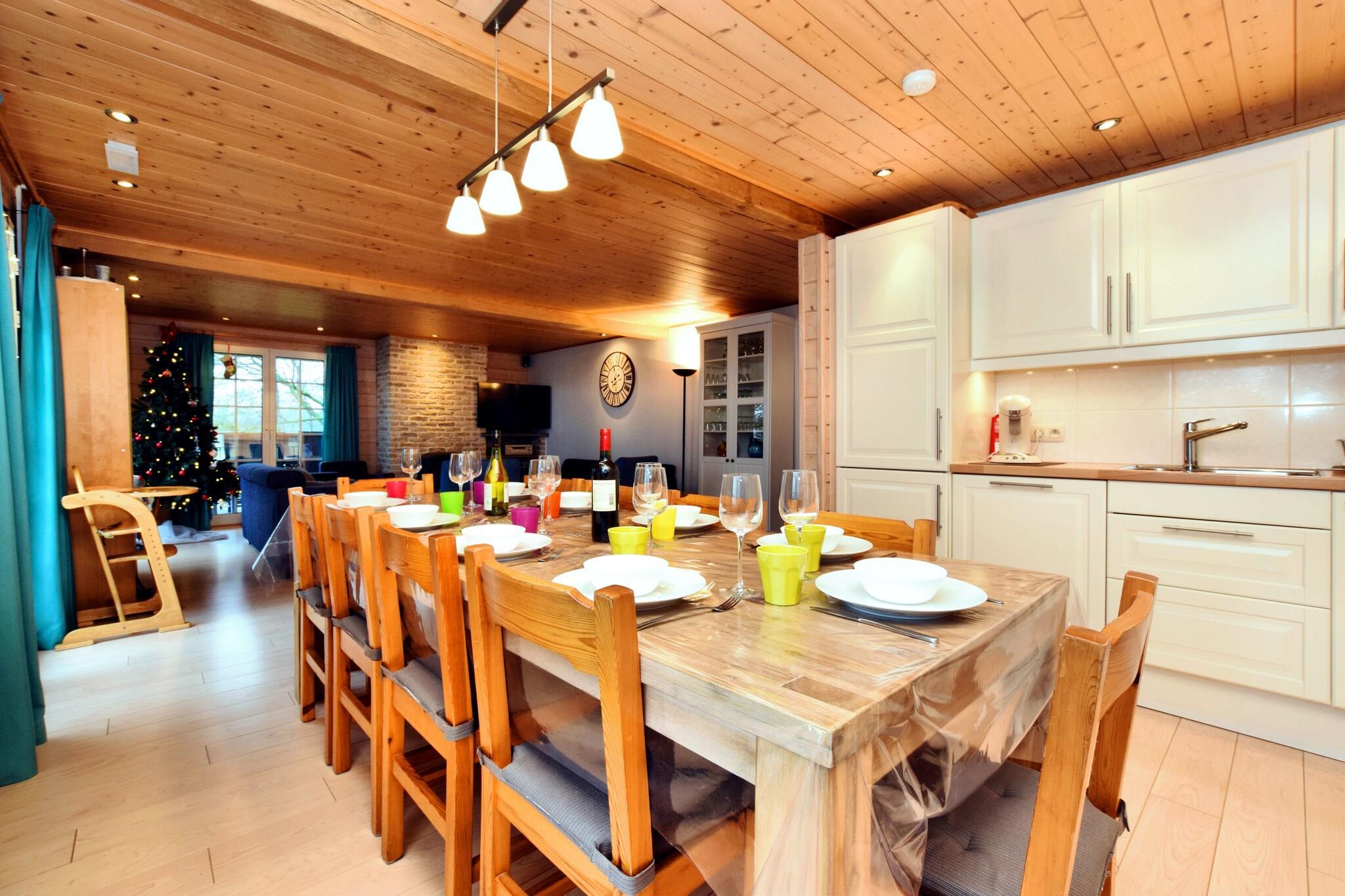 Et ophold i dette sommerhus vil give dig en god kombination af luksus og atmosfære. Det faktum at du "bliver i en hytte, gør dig allerede i stand til at tænke på et sted med en varm fornemmelse af det selvfølgelig. Den omfattende brug af træ, både indendørs og udendørs, sikrer dette. Og alle de luksuriøse faciliteter i dette feriehus gør det er endnu mere attraktivt. I kælderen på haveniveau finder du en sauna og der er en udendørs jacuzzi på den overdækkede terrasse. Forestil dig at slappe af i varmt vand, mens du ser sneen falder til jorden kun en meter væk Fra solrige dage er den rummelige have det perfekte sted at slappe af. Den store terrasse, der ombryder sig omkring to sider af huset, er delvist overdækket, så du kan stadig nyde alfresco dining med lidt lysbruser. glem også børnene og ungerne. De har et poolbord, elektronisk dartboard og spillehal med spilcomputer til deres rådighed i huset, samt en legeplads i haven. Du behøver ikke at forlade huset virkelig, selvom du ikke vil gå glip af muligheden at udforske de smukke omgivelser!