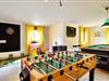 Stueetage: (entre(toilet), soveværelse(dobbeltseng eller 2 enkeltsenge Senge), opholdsrum(bordfodbold, biljard), loungerum(adgang udefra)(tørretumbler, bruser, sauna, håndvask), garage(fryser)) På 1. etage: (Stue(stereoanlæg), Køkken(komfur(Komfur med fem kogeplader, glaskeramisk), kaffemaskine(kaffetragt), ovn, combi-mikroovn, opvaskemaskine , køle-fryseskab), soveværelse(dobbeltseng), soveværelse(dobbeltseng eller 2 enkeltsenge Senge, barneseng), soveværelse(dobbeltseng eller 2 enkeltsenge Senge), badeværelse(badekar med bruser, 2x håndvask), toilet(toilet)) På 2. etage: (sofastue(Fjernsyn(parabol), DVD-afspiller), soveværelse(dobbeltseng eller 2 enkeltsenge Senge, dobbeltseng eller 2 enkeltsenge Senge), badeværelse(badekar med bruser, håndvask), toilet(toilet)) varme(central), terrasse(overdækket), terrasse, have, havemøbler, grill, legeredskaber, barnestol, kravlegård, Ladestation til el-biler, Ladestation til el-biler