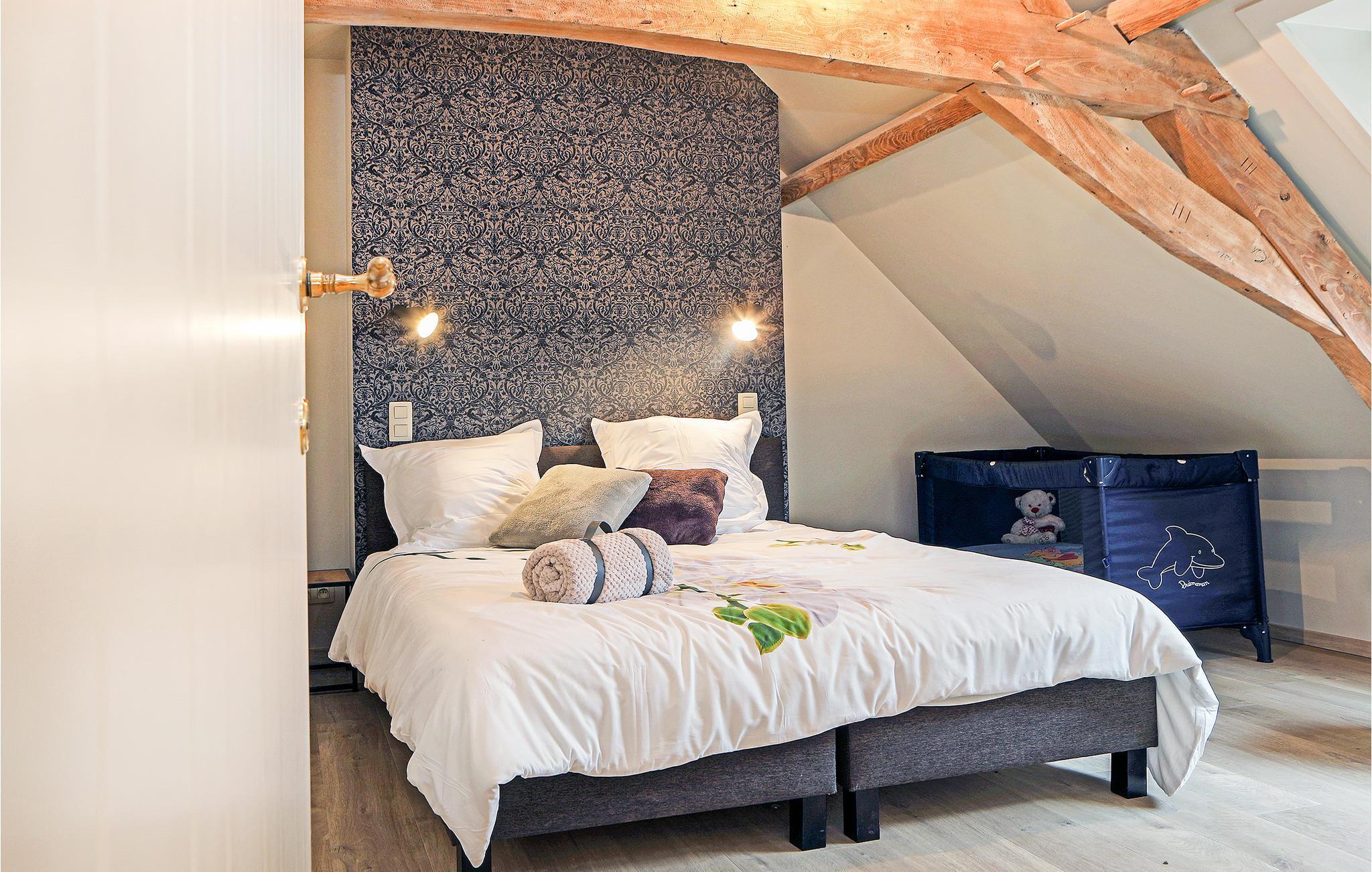 Tag din hund med dig på ferie. Den store have er helt omgivet af et højt hegn og tilbyder en fantastisk udsigt over landskabet. Haven er også udstyret med et hyggeligt picnicbord, liggestole, grill, trampolin, fodboldmål og badmintonketsjere. Det fuldstændig renoverede feriehus var en café i fortiden og der er stadig spor af den smukke bar i den store spisestue. Feriehuset har også en hyggelig stue med et smart TV. Landkøkkenet er fuldt udstyret og har opvaskemaskine, ovn, mikrobølgeovn, frituregryde, brødrister og håndblender. En lille trappe fører dig til toilettet og et hyggeligt soveværelse med køjesenge. De andre 3 soveværelser, 2 badeværelser og et separat toilet er på første sal.