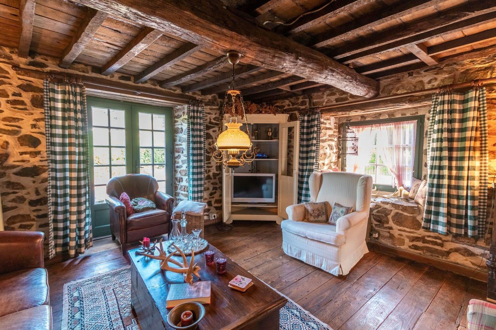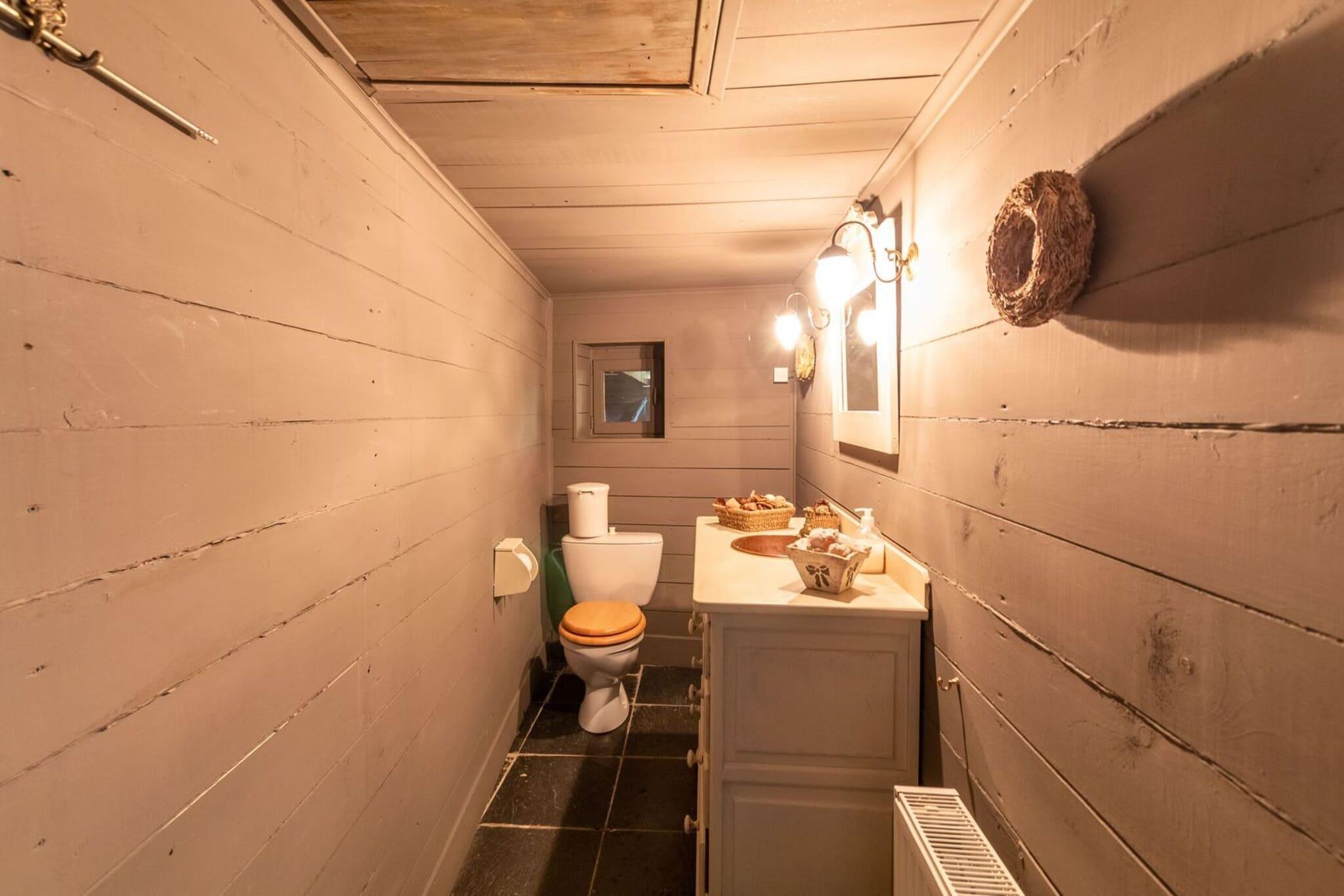 Der er et par trin mellem alle rum. Lave lofter og typisk Ardenner-gulv. Køleskabet er i kælderen (adgang via trin). Hemsen er på et halvt niveau: man kan ikke stå oprejst der.