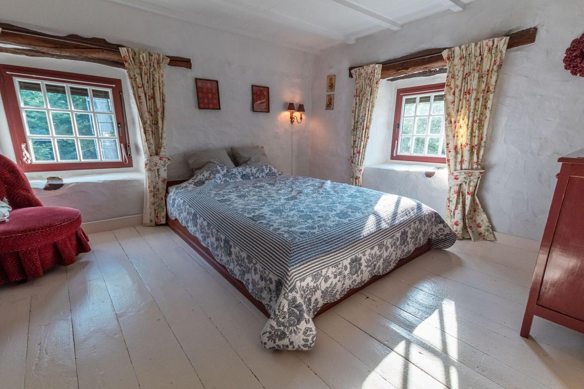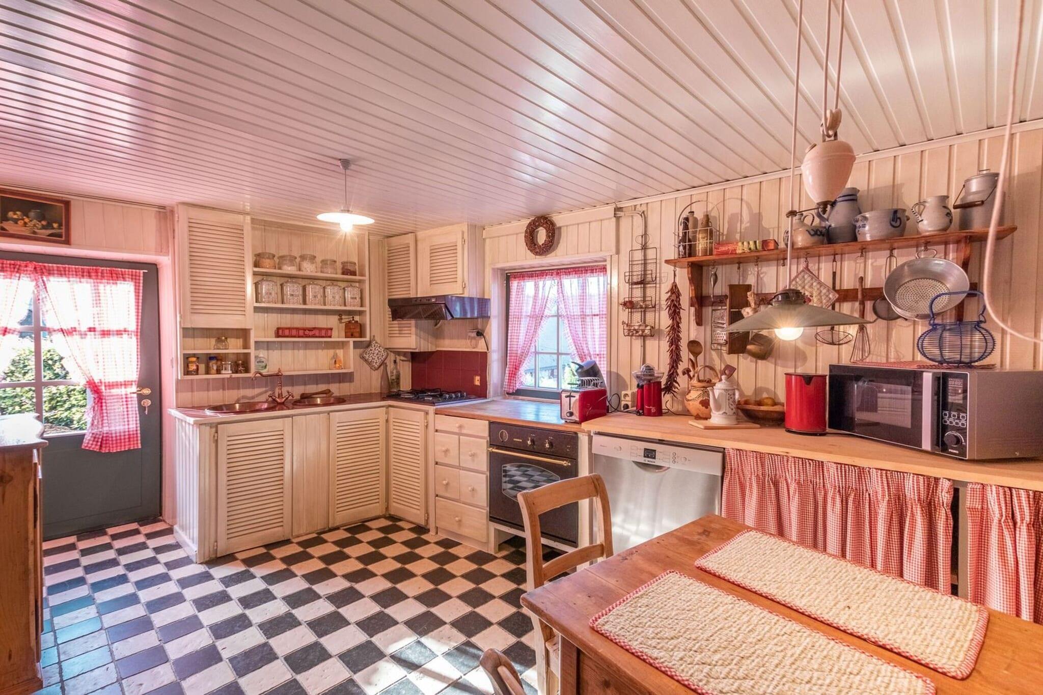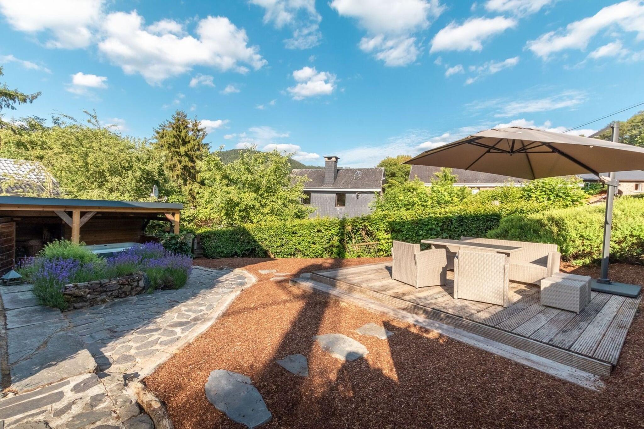 Dette fortryllende bindingsværkshus fanger den typiske charme af ardennerstil, beliggende i den maleriske landsby Coo, der er kendt for sine fantastiske vandfald. Perfekt egnet til familier eller små grupper, dette dejlige tilflugtssted kan rumme 4 til 6 gæster og tilbyder en fredelig flugt omgivet af natur. Ejendommens ydre har en møbleret terrasse, der er ideel til udendørs spisning og en grill, sammen med en overdækket og opvarmet jacuzzi tilgængelig året rundt, hvilket sikrer afslapning på alle årstider. Indenfor byder stueetagen gæsterne velkommen med en indbydende entré, der fører til en vinkælder (i øjeblikket tom), et vaskerum med en vaskemaskine og et praktisk toilet. Det veludstyrede køkken kan prale af væsentlige apparater, herunder en ovn, gaskomfur, køleskab, opvaskemaskine og mikroovn, med nem adgang til haven. Den hyggelige spisestue, udsmykket med en brændeovn, skaber en varm atmosfære til fælles måltider, mens den komfortable stue byder på et tv, der giver det perfekte sted at slappe af efter en dag med udforskning. På første sal finder gæsterne to rummelige soveværelser. Det første soveværelse har en 160x200 cm dobbeltseng og et en-suite badeværelse med badekar, toilet og håndvask. Det andet soveværelse indeholder også en 160x200 cm dobbeltseng, suppleret af en charmerende mezzanin med endnu en dobbeltseng og et påklædningsværelse, samt eget badeværelse med italiensk bruser. Bekvemt beliggende nær de berømte Coo-vandfald, et sportscenter, en forlystelsespark, en dyrepark, små restauranter og det berømte Spa-Francorchamps-kredsløb, tilbyder dette charmerende hjem en perfekt blanding af ro og eventyr, hvilket gør det til et ideelt tilflugtssted i hjertet af Ardennerne.