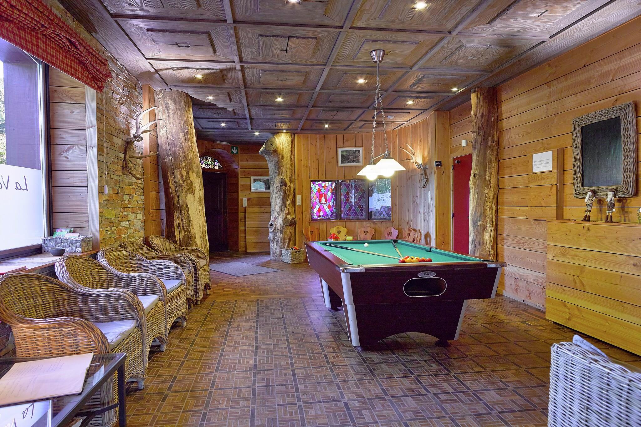 Denne store luksus palæ beliggende ved floden Amblève er ideel til store familier. Der er meget plads og herregården med mange luksuriøse faciliteter. Træinteriøret i huset adderer en varm og hyggelig atmosfære. Der er flere loungeområder med brændeovn og gaskomfur, satellit-tv, dvd, internet og en bar med to køleskabe. Der er et legeplads til børnene, herunder et bordfodboldhockeybord og et poolbord. Det fuldt udstyrede køkken er lavet til store familiegrupper og har et spisebord med plads til op til 20 personer. Den sydvendte have er indhegnet og grænser op ad Amblève-floden. Der er også en grill og en pétanque gyde. Indendørs swimmingpool med sauna ligger i en separat anneksbygning i haven nær huset. Du er et par kilometer væk fra den berømte vandresti \ Le