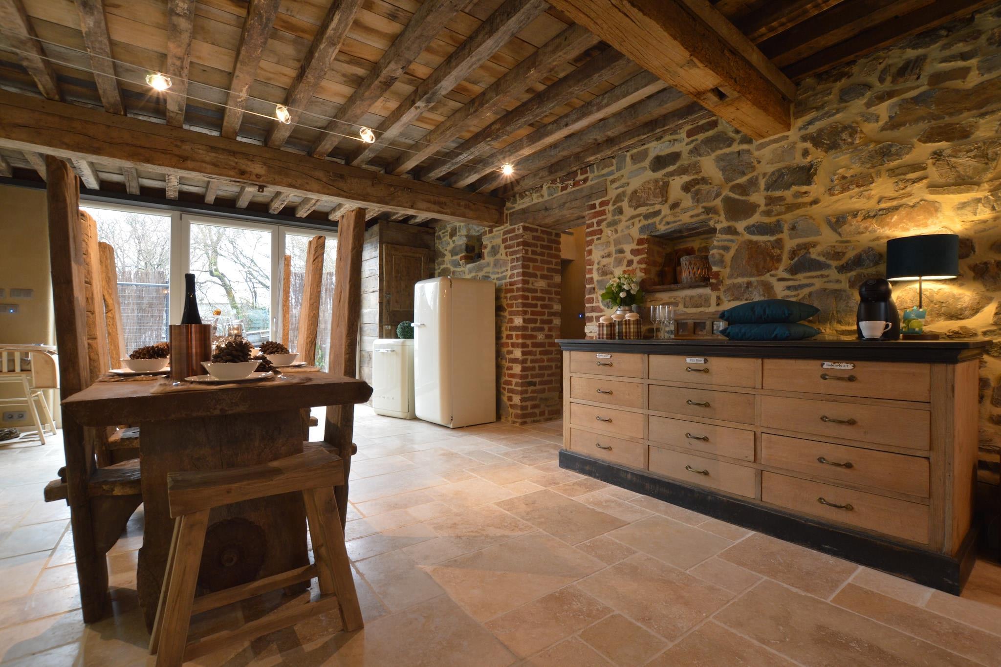 Dette er et luksuriøst hjem i landlig stil. Huset har alle moderne bekvemmeligheder, men er indrettet på en klassisk måde, med mange stenvægge og trægulve. Indkvarteringen er ideel til familier, par eller vennegrupper. Huset ligger i historiske Theux, tæt på byen Spa, kendt for sine termiske bade. Du kan også besøge det tidligere badehus og kirkerne. Huset er fordelt på 3 etager, med stuekøkken og afslapningsrum i stueplan. På 1. sal finder du en stue, 2 soveværelser med dobbeltsenge og en terrasse. På 2. sal er 3. soveværelse og et badeværelse. Sidst på dagen kan du slappe af i swimmingpoolen, boblebadet eller den infrarøde sauna. Og tænd grillen på hyggelige sommeraftener! Bemærk: Ejendommen beder gæsterne omhyggeligt udfylde gruppesammensætningen, når de foretager en reservation, og være særligt opmærksomme på antallet af voksne, børn og babyer, fordi grupper af personer under 30 år ikke accepteres.