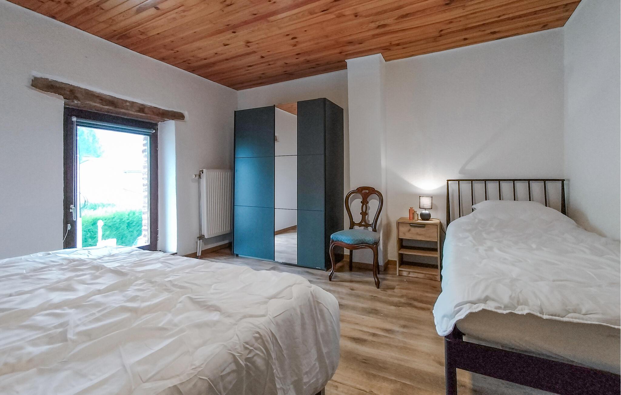 Dette sommerhus ligger ideelt i hjertet af landsbyen, så I nemt kan nå de lokale tilbud. Besøg de museer og attraktioner, som Treignes har at tilbyde, såsom Écomusée I Viroin eller den autentiske togstation. Tag på en vidunderlig vandretur i nationalparken L'Entre-Sambre-et-Meuse og beundre Fondry des Chiens' imponerende klippeformationer. Besøg også smukke byer og landsbyer som Vierves-sur-Viroin, Nismes, Mariembourg og Couvin. Den franske grænse er ikke langt væk. Benyt lejligheden til at besøge den lille befæstede by Rocroi eller de charmerende byer Givet og Charleville-Mézières.