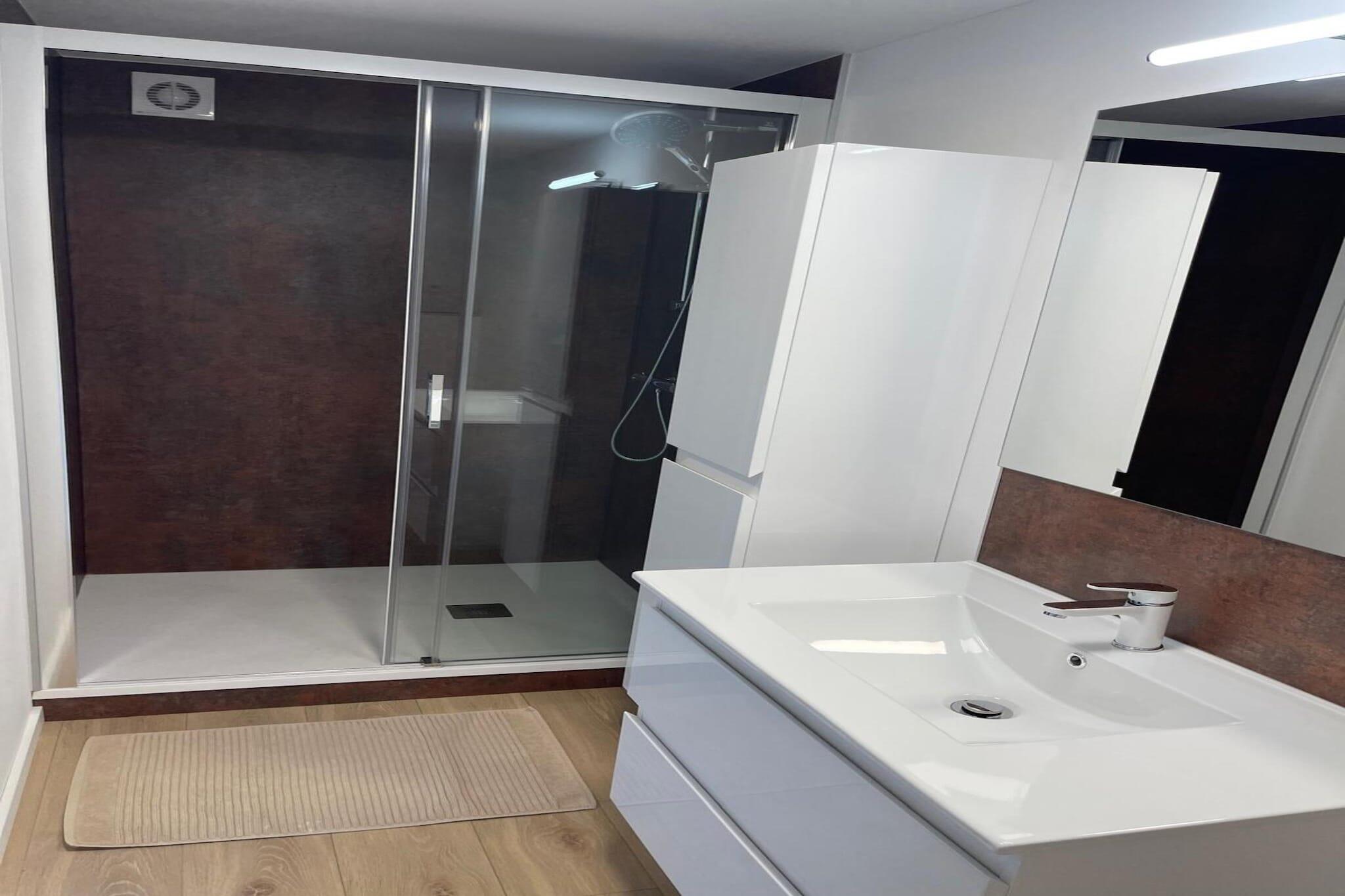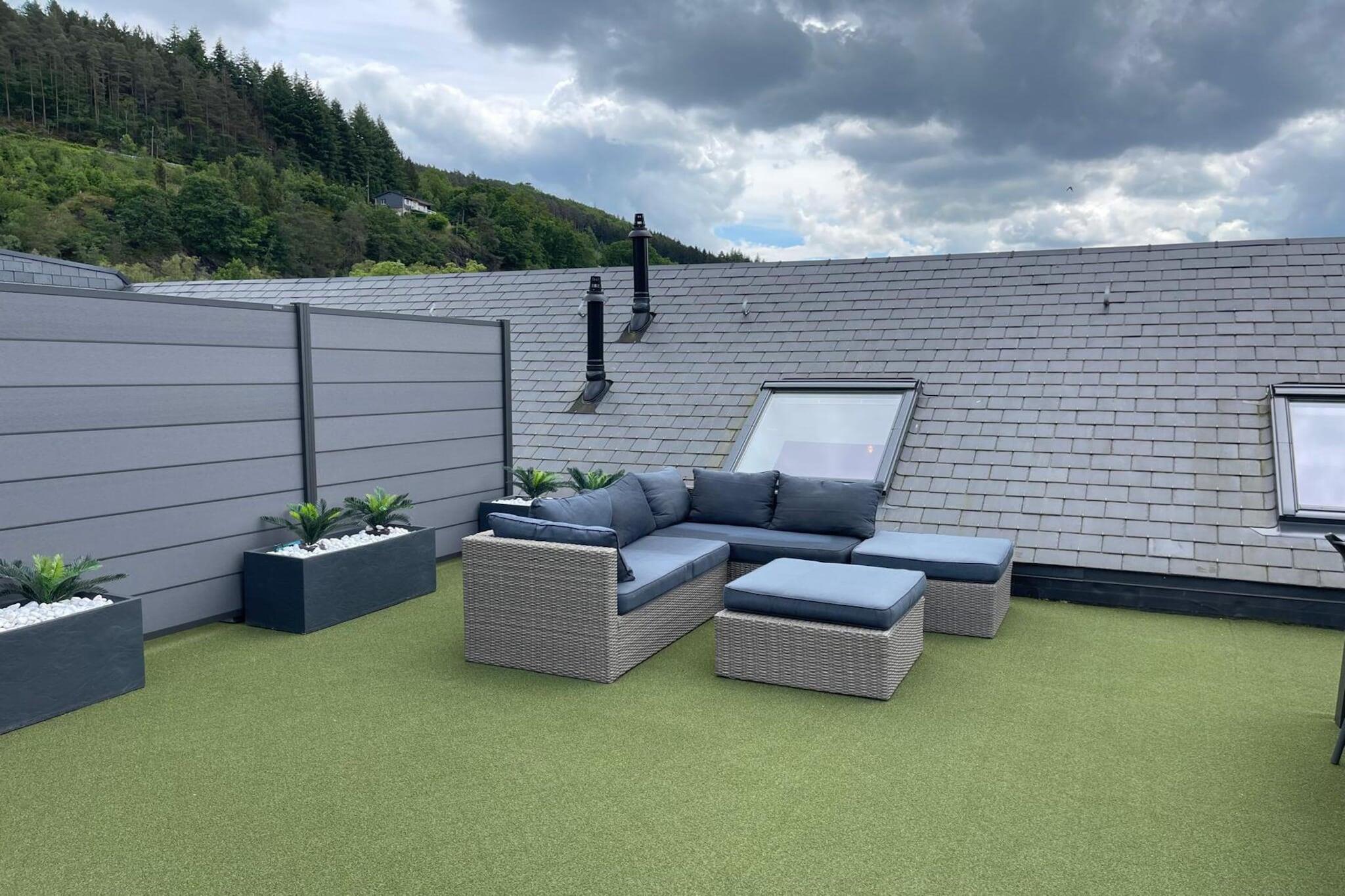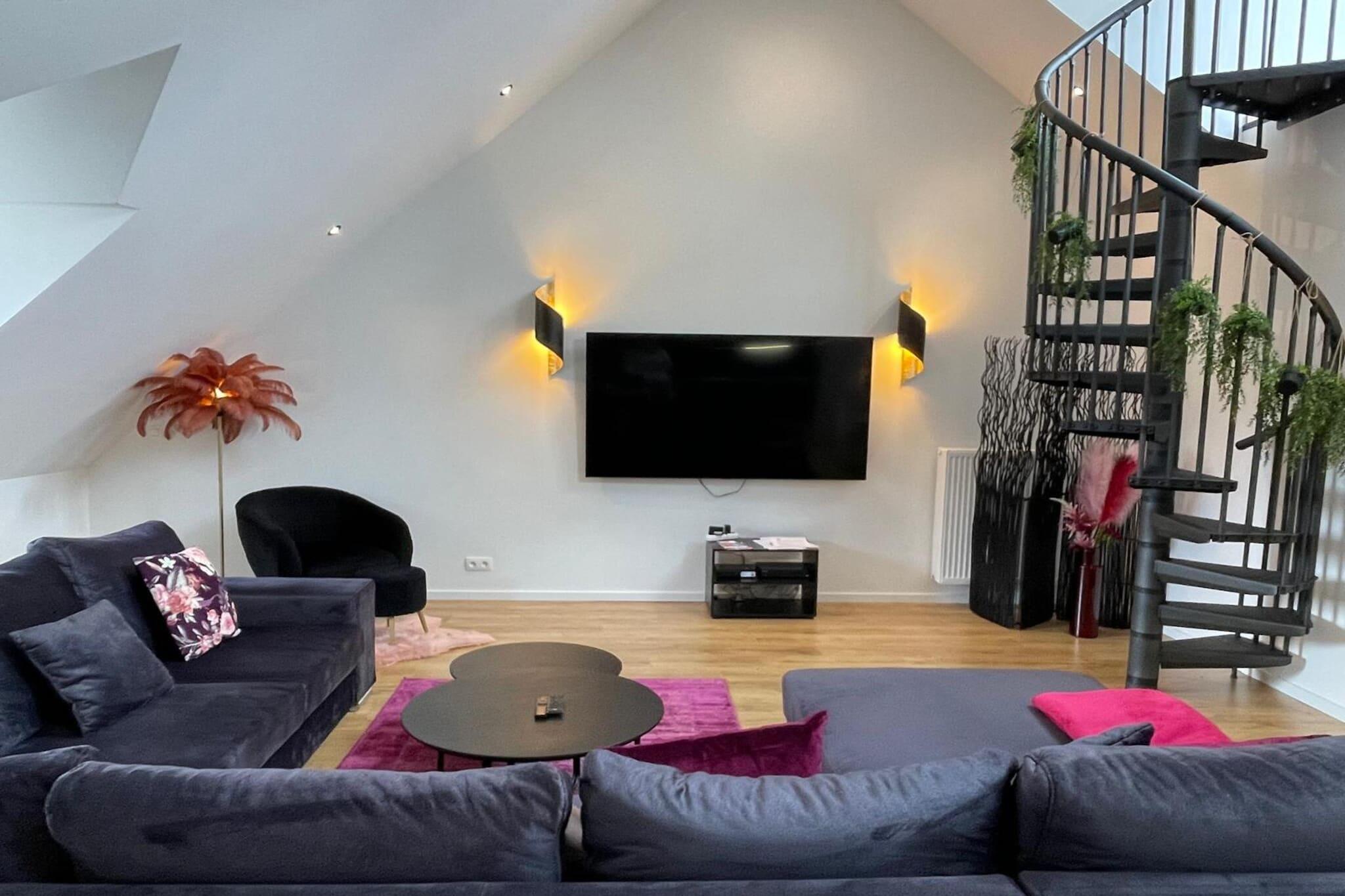På 3. etage: (gang, Stue(dobbeltsovesofa, Fjernsyn(fladskærm)), køkken-alrum(kogeplade, elkedel, brødrister, kaffemaskine, ovn, mikrobølgeovn, opvaskemaskine , køle-fryseskab), Soveværelse med badeværelse(dobbeltseng, bruser, håndvask, toilet), Soveværelse med badeværelse(enkeltseng, dobbeltseng, bruser, håndvask, toilet), vaskerum (tørretumbler, vaskemaskine)) På 4. etage: (tagterrasse, have, havemøbler) varme(central), strygebræt, strygejern