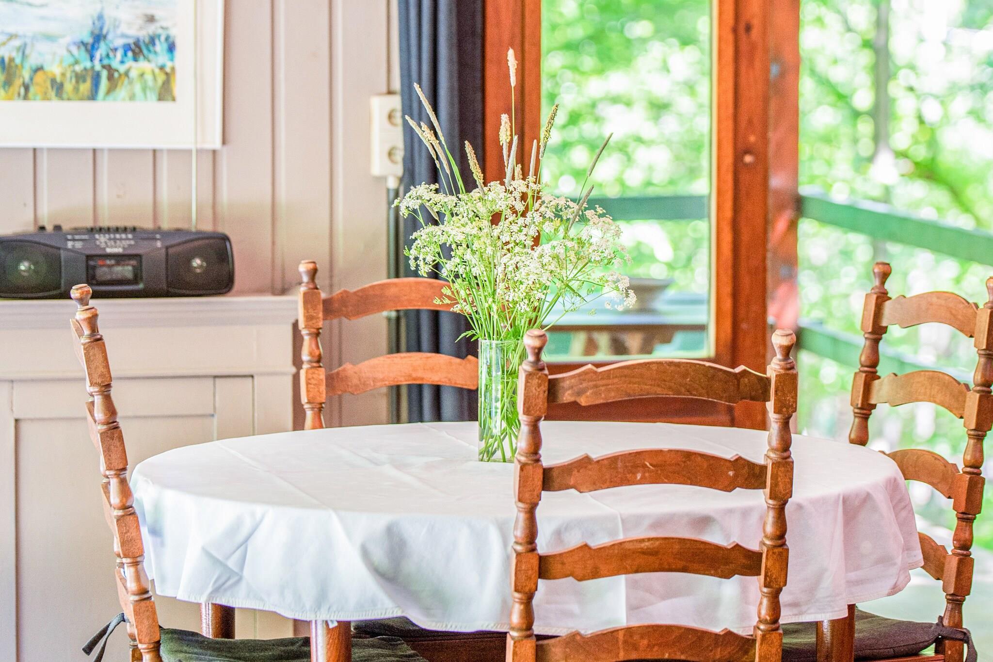 Stueetage: (entre, Stue(Fjernsyn, kakkelovn(træ), terrasse), sofastue, Køkken(mikrobølgeovn, køleskab), soveværelse(dobbeltseng(dobbelt dynebetræk), håndvask), soveværelse(dobbeltseng(dobbelt dynebetræk), håndvask), badeværelse(bruser), toilet) radio, patio, varme(central), 2x terrasse(overdækket), have, havemøbler, parkering