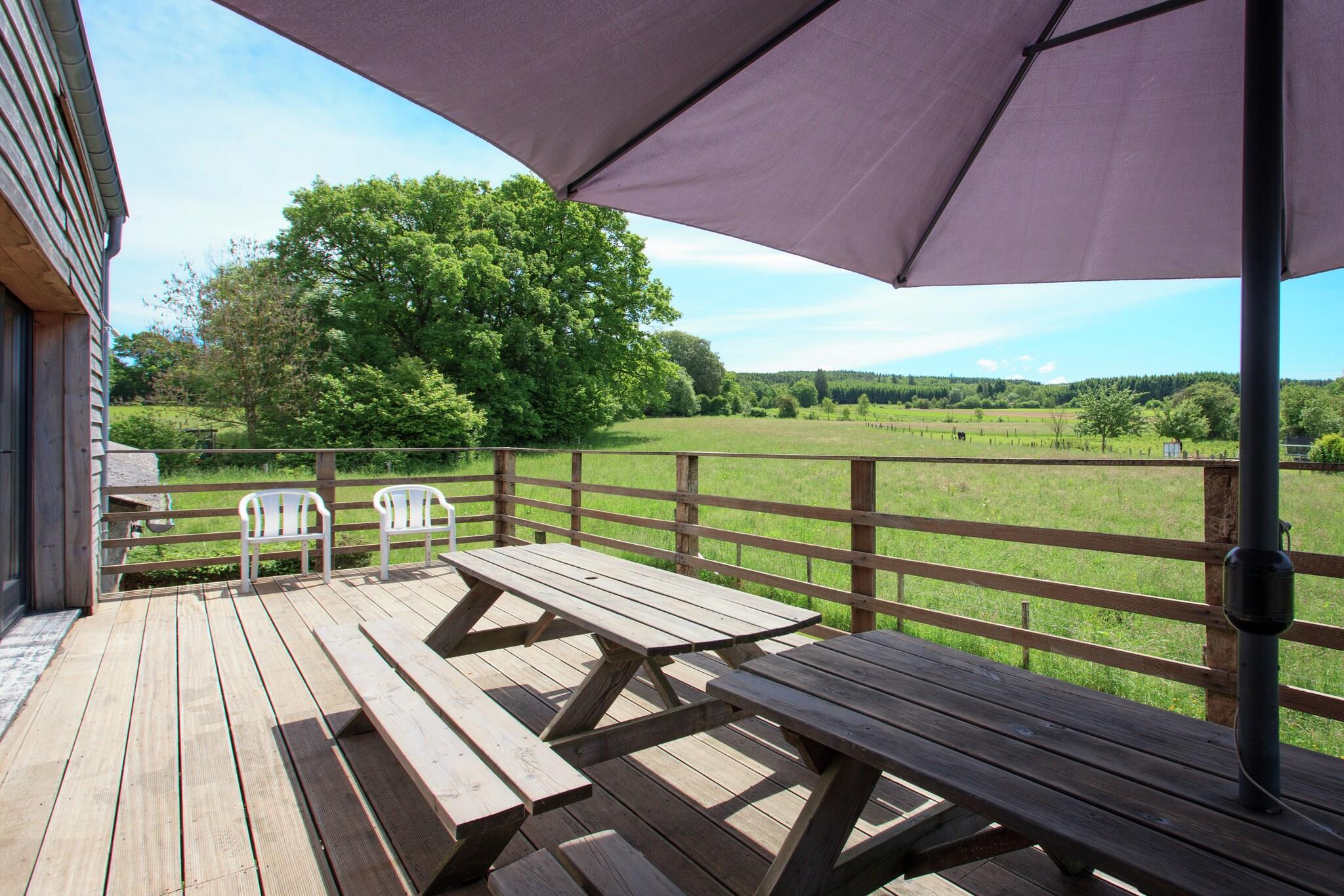 Vaux-Chavanne, med typiske Ardennernes hytter, ligger i en landlig landsby, hvor du finder dette hus-fest hjem. Det er på bagsiden af en flot gård, der kommer ind gennem balkonen. Fra balkonen er der dejlig udsigt over enge. Ferieboligen er indrettet i enkel stil og giver rigelig plads til større grupper for at nyde en god ferie. I nærheden er der den velkendte Baraque Fraiture, hvor du kan gå på langrend til dit hjerteindhold. For børn er Planet Puzzle (en labyrint af buske og hække) og Plopsa Coo særligt anbefalet. På Vielsalm er der en sø og subtropisk svømmereparadis. Og selvfølgelig kan du tage gode vandringer fra sommerhuset til området omkring Manhay.