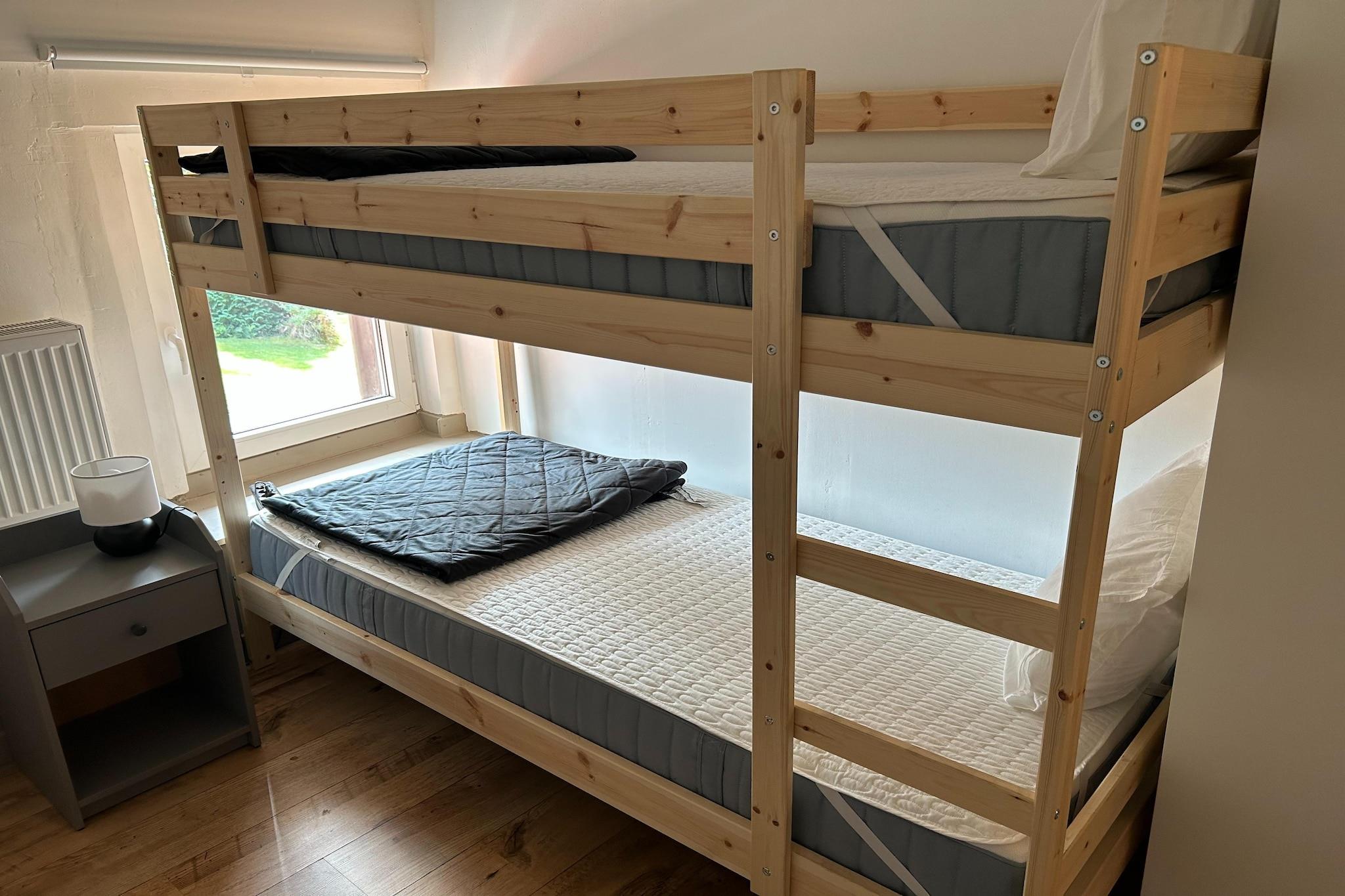Stueetage: (Stue(Fjernsyn, spisebord, sofahjørne, Netflix), Køkken(elkedel, brødrister, kaffemaskine, ovn, mikrobølgeovn, opvaskemaskine , køleskab, fryser, , , Wine glasses), badeværelse(bruser, håndvask, toilet), badeværelse(bruser, håndvask, toilet)) På 1. etage: (soveværelse(dobbeltseng, håndvask), soveværelse(køjeseng, håndvask), soveværelse(enkeltseng, enkeltseng, håndvask), soveværelse(enkeltseng), soveværelse(dobbeltseng, håndvask), badeværelse(bruser, håndvask, toilet)) Internetadgang, tørretumbler, vaskemaskine, patio, terrasse, have, havemøbler, grill, parkering, bordfodbold,