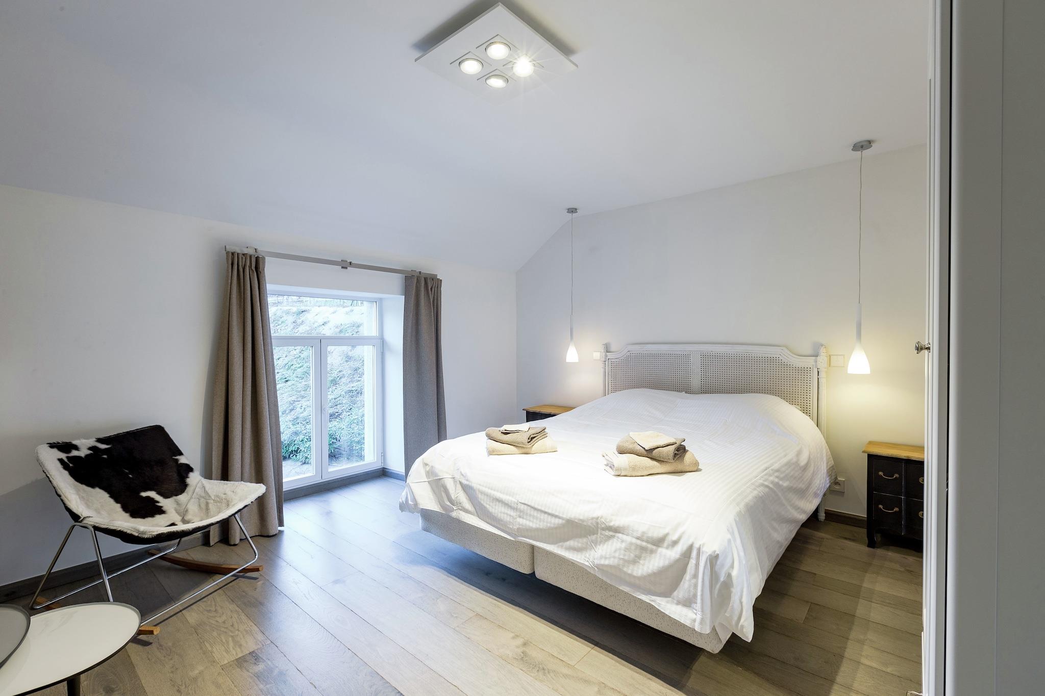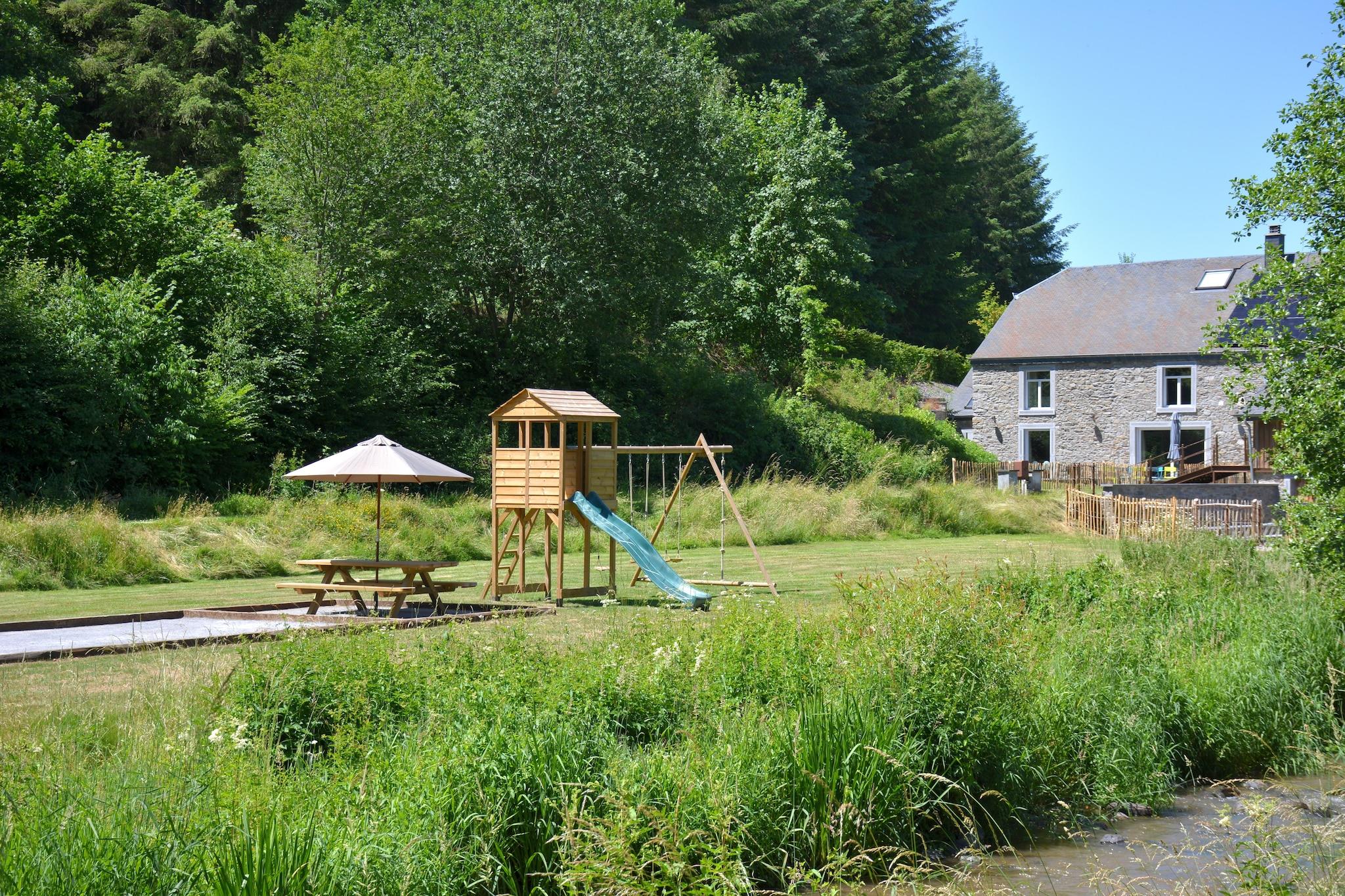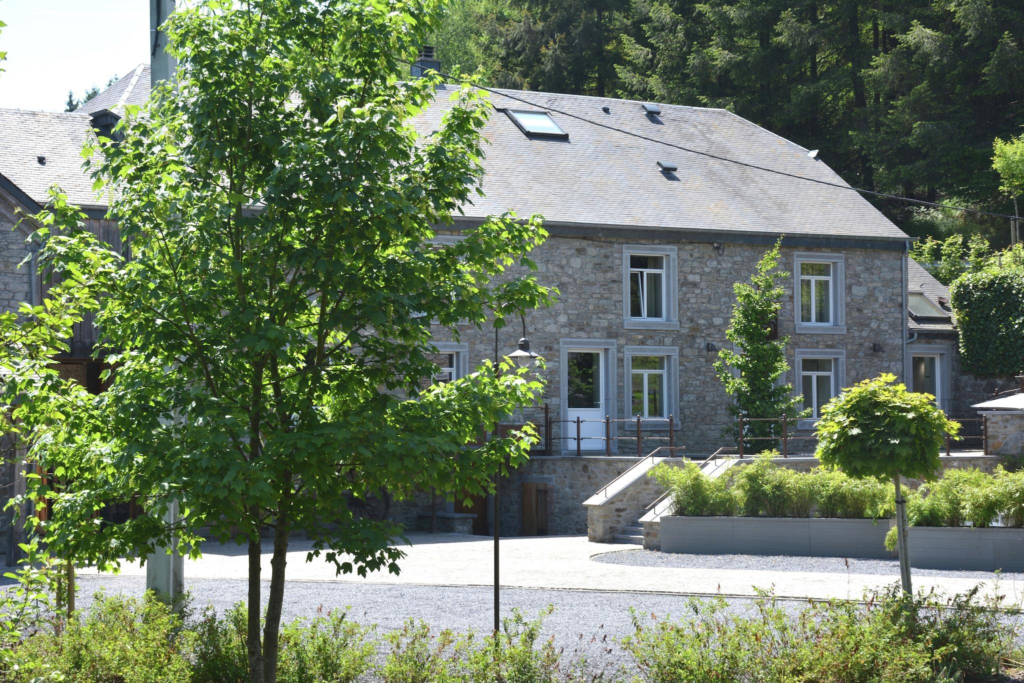 Denne fredfyldte, renoverede mølle i Gedinne tilbyder en fredelig skovflugt for op til 8 gæster. Ideel til familier, det har 4 soveværelser, antikke møbler, centralvarme og en hyggelig stue/spisestue med brændeovn. En møbleret have med en dam, en terrasse og en grillplads inviterer dig til at slappe af i naturen. Beliggende kun 200 m fra skoven og 7 km fra Gedinne bymidte er området perfekt til vandre- og cykelture. Besøg Lavaux Ste Anne Castle (16 km), Beauraing (8 km), eller nyd langrend (10 km). Børn har en høj stol og børneseng; gratis trådløs internetadgang og parkering på stedet er inkluderet. Til større forsamlinger kan du booke Espace du Meunier: en rummelig hal med pejs, udsigt over floden, køkken, projektor, bordfodbold og elevator. Ideel til familiesammenkomster eller forretningsbegivenheder. Weekendudlejning inkl. skat (forsyning og rengøring inkluderet; køkken skal rengøres ved afrejse).