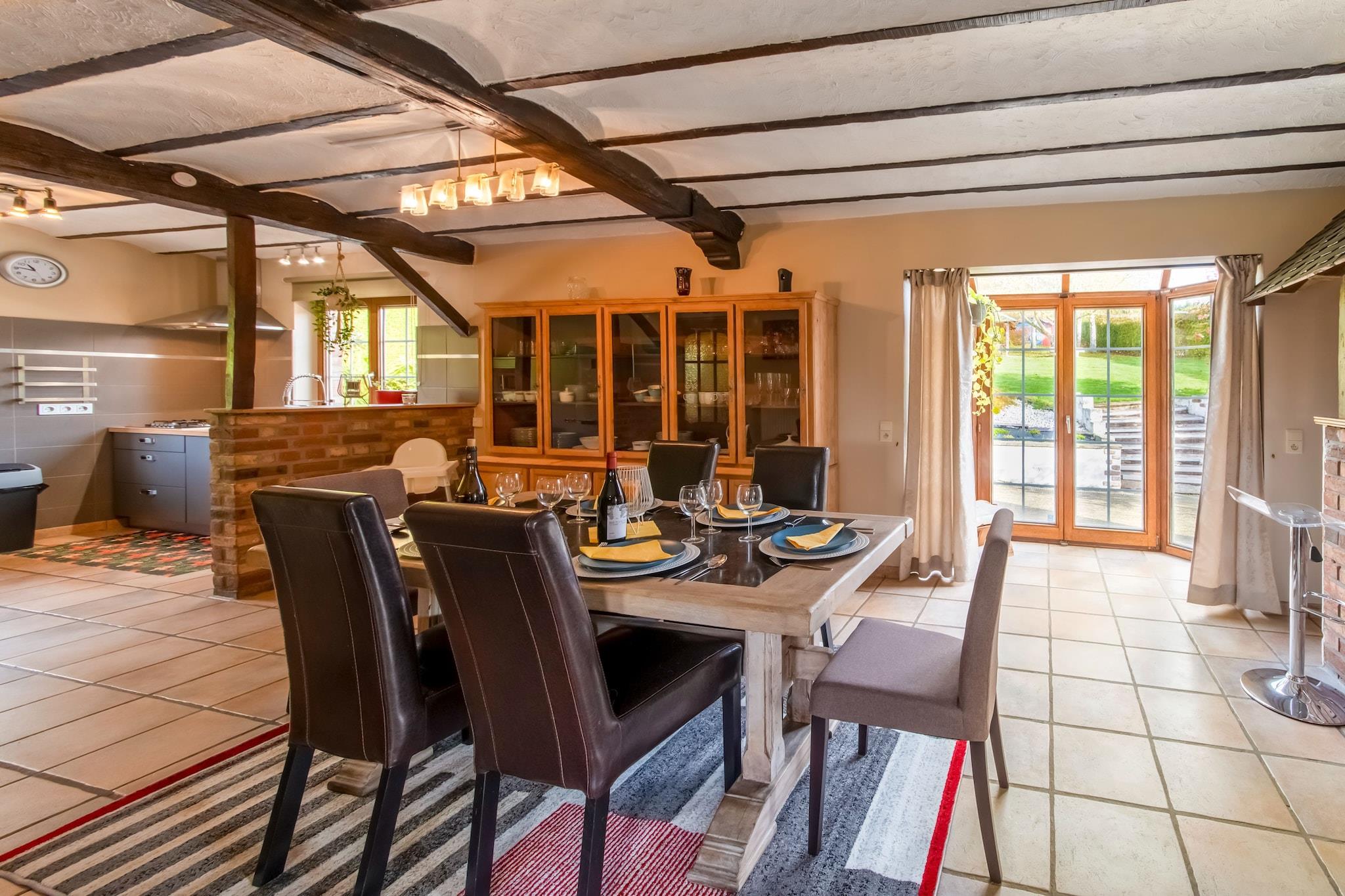 Dette elegante feriehus i Vielsalm er et roligt tilflugtssted for familier eller venner med et raffineret interiør, brændeovn og spillerum for alle aldre. Det fuldt udstyrede køkken og grillterrassen inviterer dig til at spise under åben himmel, mens tagterrassen også har jacuzzi til rådighed fra 15. maj til september for ultimativ afslapning. Hjemmet er perfekt beliggende til både sommereventyr og vintersport, kun 6 km fra skiløjperne og tæt på cykel- og vandrestier. Udforsk nærliggende byer som Grand-Halleux, Trois-Ponts og Malmédy (19 km), eller deltag i spændende begivenheder på Spa-Francorchamps-banen. Et supermarked i gåafstand sikrer bekvemmelighed under hele dit ophold. Nyd lokale retter på Le Gastromme for belgisk mad eller La Table De Marie for et hyggeligt, familievenligt måltid. Friluftsentusiaster kan cykle langs Lac des Doyards-ruten eller vandre langs Vielsalm-skovstien, der begge tilbyder naturskønne ruter gennem Ardennerne. Bemærk: Boblebad er kun tilgængeligt fra 15. maj til 15. september.