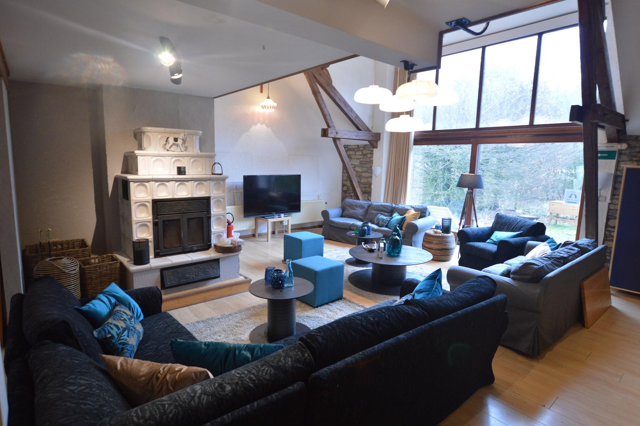 Dette rummelige feriehus med 16 soveværelser i Vielsalm, beliggende i hjertet af de belgiske Ardennerne, byder velkommen til op til 42 gæster, ideelt til store familier, genforeninger eller grupperejser. Det er omgivet af natur og byder på en have, der er perfekt til at slappe af i solen eller nyde kølige drinks i den friske luft. Udforsk Vielsalms frodige skove, naturskønne floder og Baraque de Fraiture for at stå på ski. Den fredelige Doyards-sø og adskillige vandre- og cykelstier tilbyder et roligt tilflugtssted i Ardennernes landskab. Indenfor tilføjer en hyggelig brændeovn varme og charme på køligere dage. Tilbring aftener omkring grillen, eller samles til filmaftener ved hjælp af projektionslærredet. Huset er børnevenligt, med barneseng og høj stol til rådighed efter anmodning. Uanset om du slapper af indendørs eller begiver dig ud i naturen, er dette hjem designet til komfort, forbindelse og uforglemmelige minder.