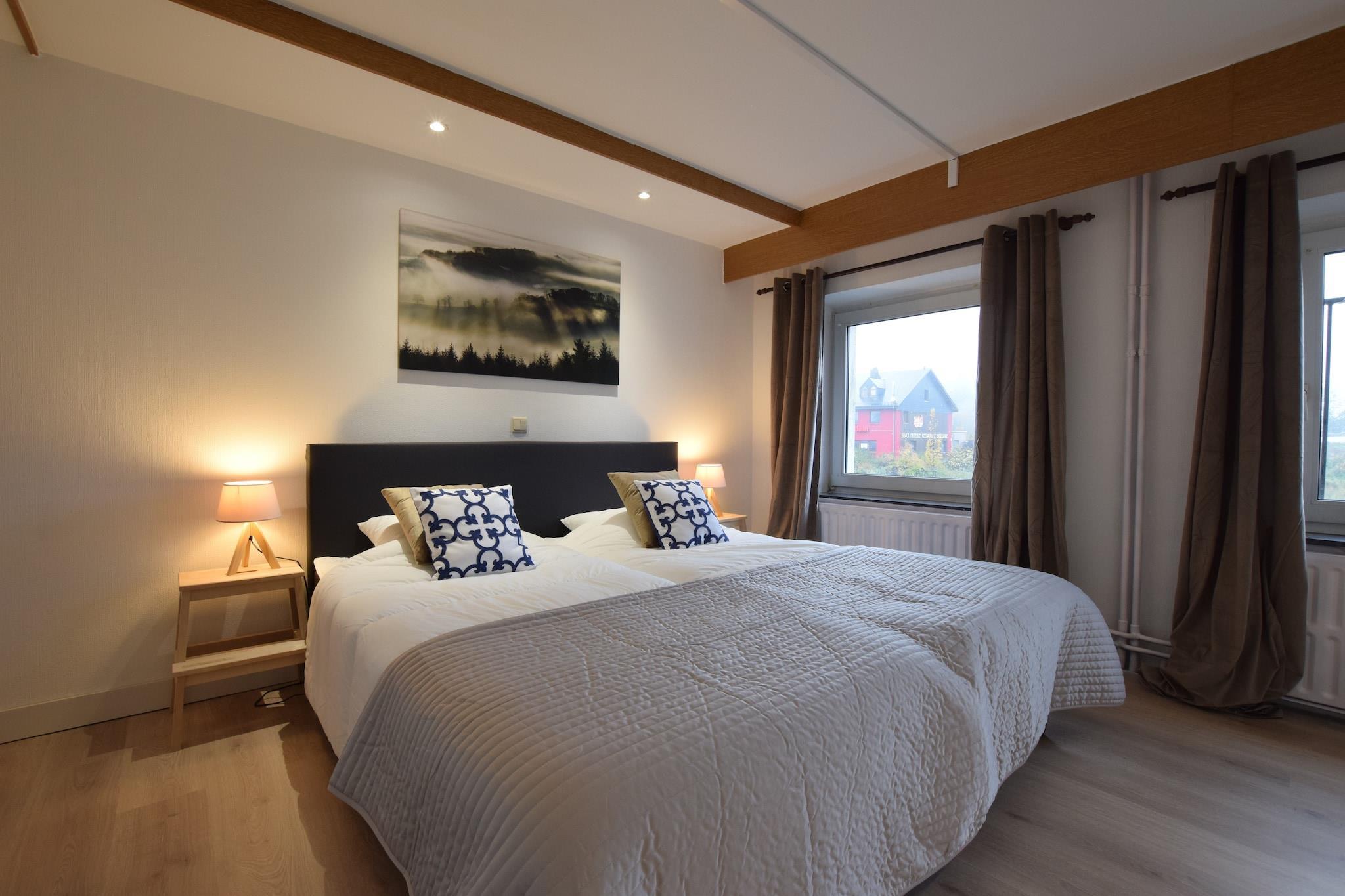 Hvis du leder efter et feriehus at samles med familie eller venner, er dette tidligere hotel i Baraque Fraiture, beliggende i hjertet af de belgiske Ardenner, et perfekt valg. Med generøs plads og elegant design er det placeret nær Vielsalm og de populære skiløjper, hvilket gør det ideelt til både vintersjov og sommerferie i naturen. Beliggende på et af Belgiens højeste punkter, byder området på 3 alpinløjper, langrendsløjper og en fantastisk panoramaudsigt over enge, skove og hede fra Tailles-plateauet. Hjemmet er blevet omhyggeligt renoveret, der blander moderne stil med komfort. Nyd måltider i den rummelige spiseplads eller fyr op for en grill i den private have. Om aftenen kan du slappe af med en drink i hotellets bar eller udfordre din gruppe til bordtennis eller billard i rekreationsrummet. Dette hus byder på noget for alle aldre, en perfekt grupperejse i naturen.