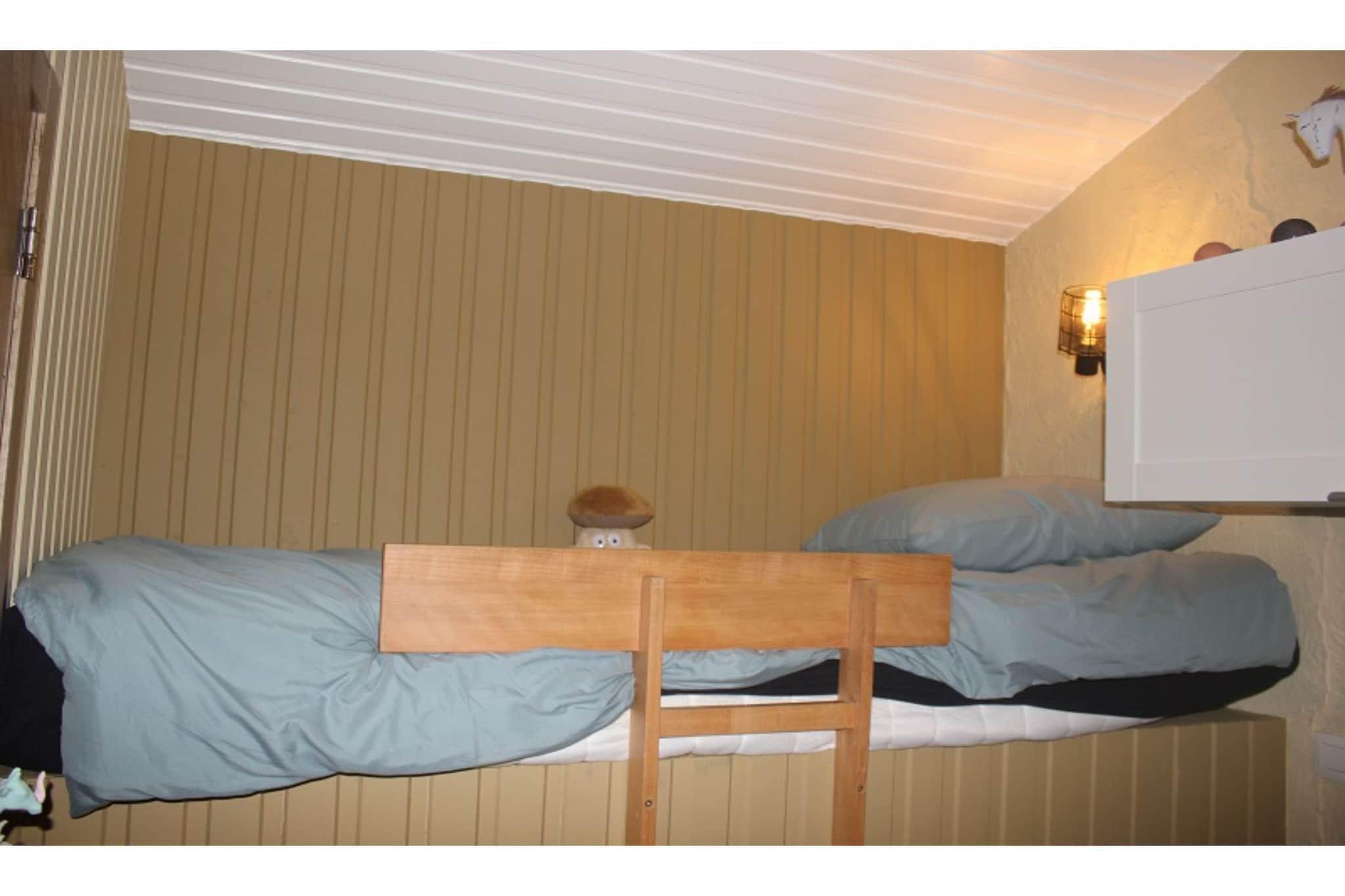 Stueetage: (åbent køkken(komfur(induktion), kaffemaskine(kaffepude), combi-mikroovn, opvaskemaskine , køleskab, fryser), stue / spisestue(dobbeltsovesofa, Fjernsyn(kabel), spisebord, kakkelovn(pille), sofahjørne), soveværelse(2x enkeltseng), soveværelse(køjeseng), badeværelse(bruser, toilet)) varme(elektrisk), terrasse, havemøbler, barnestol