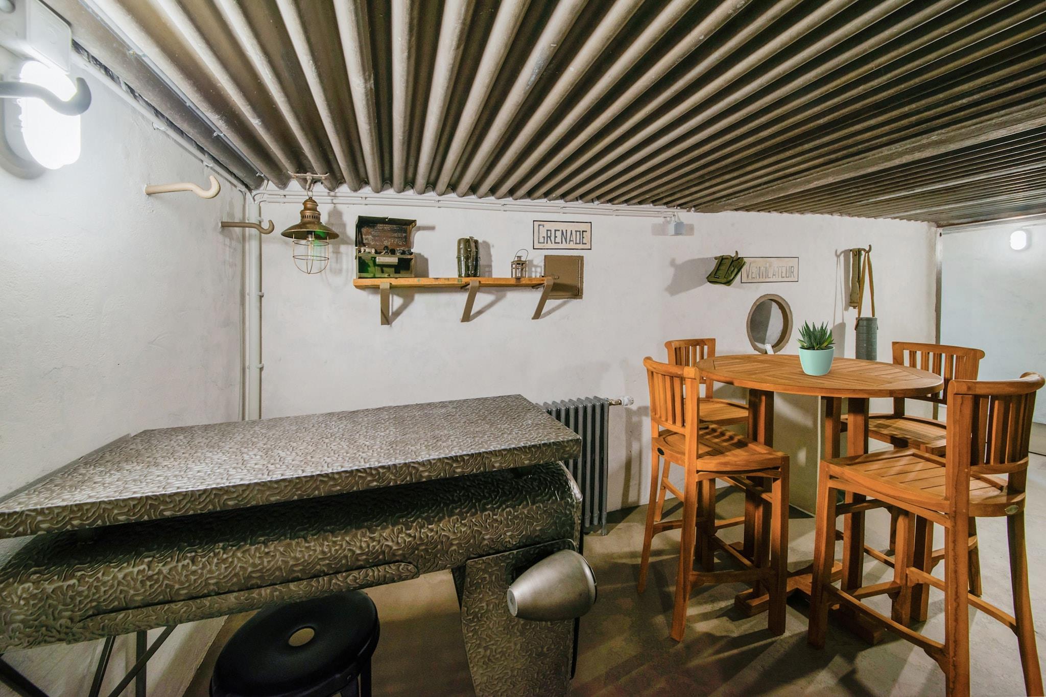 Beliggende nær den hollandske grænse er Fort Eben-Emael en uhyggeligt bevaret fæstning fra 2. verdenskrig, der engang stod som Europas mest formidable fæstning. Besøgende kan stige ned i det enorme underjordiske netværk af tunneler, kaserner og artilleribunkere, hvor den uhyggelige stilhed gentager de dramatiske begivenheder i maj 1940. Fortets fordybende udstillinger og guidede ture vækker det dristige tyske svæveflyangreb, der ændrede militærhistoriens gang, til live. Bare en kort køretur væk tilbyder byen Blegny en anderledes form for nedstigning ned i dybet af sin UNESCO-listede kulmine. Tag en hjelm på og tag den originale elevatorskakt for at udforske minearbejdernes underjordiske verden, komplet med bevarede maskiner og stemningsfulde historier om livet under jorden. Over jorden er det omkringliggende landskab oversået med charmerende landsbyer og naturskønne cykelruter. De 2 soveværelser i stueetagen er placeret i bunkeren. Afslut din rejse med et kulinarisk stop i Richelle eller Herstal. Nyd håndlavet pasta på Pasta e Canella, håndlavet gelato på Ice Bar Glacier Lamorgese eller et raffineret italiensk måltid på La Trattoria. Disse lokale perler tilbyder en smagfuld kontrast til regionens dystre fortid og blander historie med gæstfrihed i hver bid.