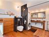 Stueetage: (entre, åbent køkken(spisebord, komfur(Komfur med fem kogeplader), kaffemaskine, ovn, mikrobølgeovn, opvaskemaskine , køle-fryseskab), stue / spisestue(Fjernsyn(digital), pejs, DVD-afspiller, stereoanlæg), toilet) På 1. etage: (soveværelse(dobbeltseng), soveværelse(dobbeltseng), badeværelse(tørretumbler, siddebadekar, bruser, 2x håndvask, toilet, vaskemaskine), Repos, tagterrasse) terrasse, havemøbler, barneseng, barnestol