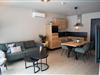 With a surface area of around 55 m², the apartment has a bright living room with a cosy seating area, a dining area and a fully equipped kitchen. Think of a 4-burner cooking appliance, combination microwave, dishwasher, refrigerator and filter coffee maker – ideal for those who like to cook themselves during the holiday.