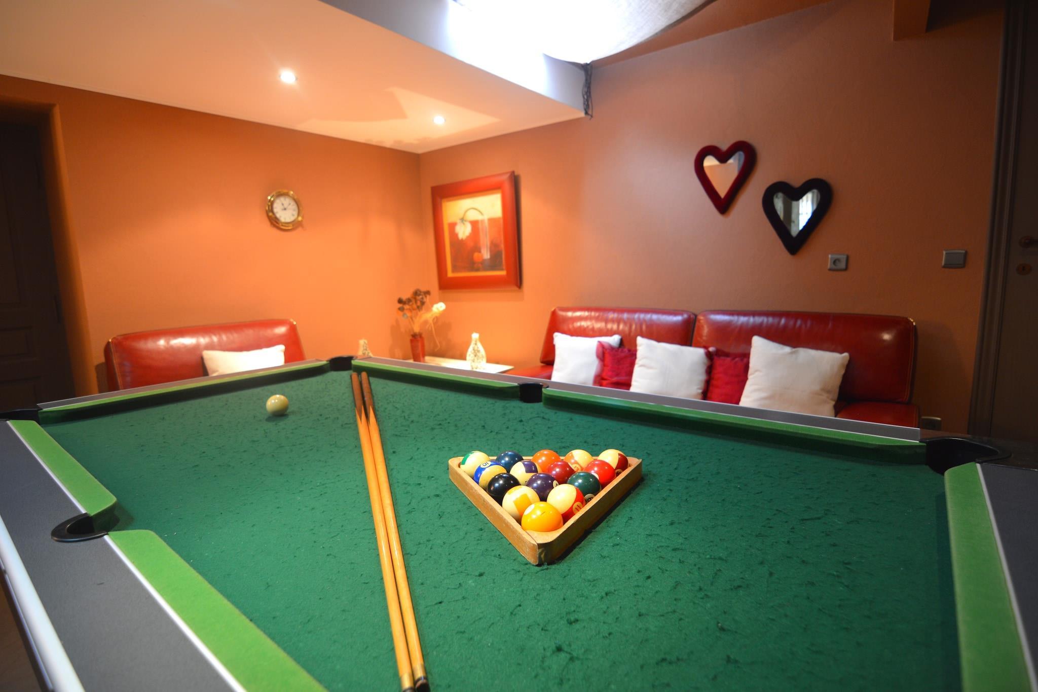 Bo i denne luksusmølle i Ardennerne, der er udstyret med en rigtig indendørs swimmingpool. Den sande epikuræer vil ikke finde noget, der mangler her. 11 soveværelser kan rumme 22 gæster (og 1 kæledyr). Ideel til familier. Adgang til huset sker via et par trin, uden kørestolsramper._x000D_ _x000D_ Start dagen med en sund tur i skoven, som ligger 100 m fra overnatningsstedet. I 3 km afstand finder du et supermarked, hvor du kan få din morgenmad og om aftenen kan du spise en dejlig middag i en af restauranterne (også 3 km). Centrum er 1 km fra overnatningsstedet._x000D_ _x000D_ Hvis du ikke vil ud og spise, kan du lave en middag til hele selskabet i køkkenet. Du kan forfriske dig på badeværelset, som er udstyret med bruser og håndvask. Der er varmelegeme i huset og den private pool er opvarmet og overdækket. Til et spil bordfodbold eller billard er dette også stedet at være._x000D_ _x000D_ Der er et busstoppested 1,4 km fra overnatningsstedet.