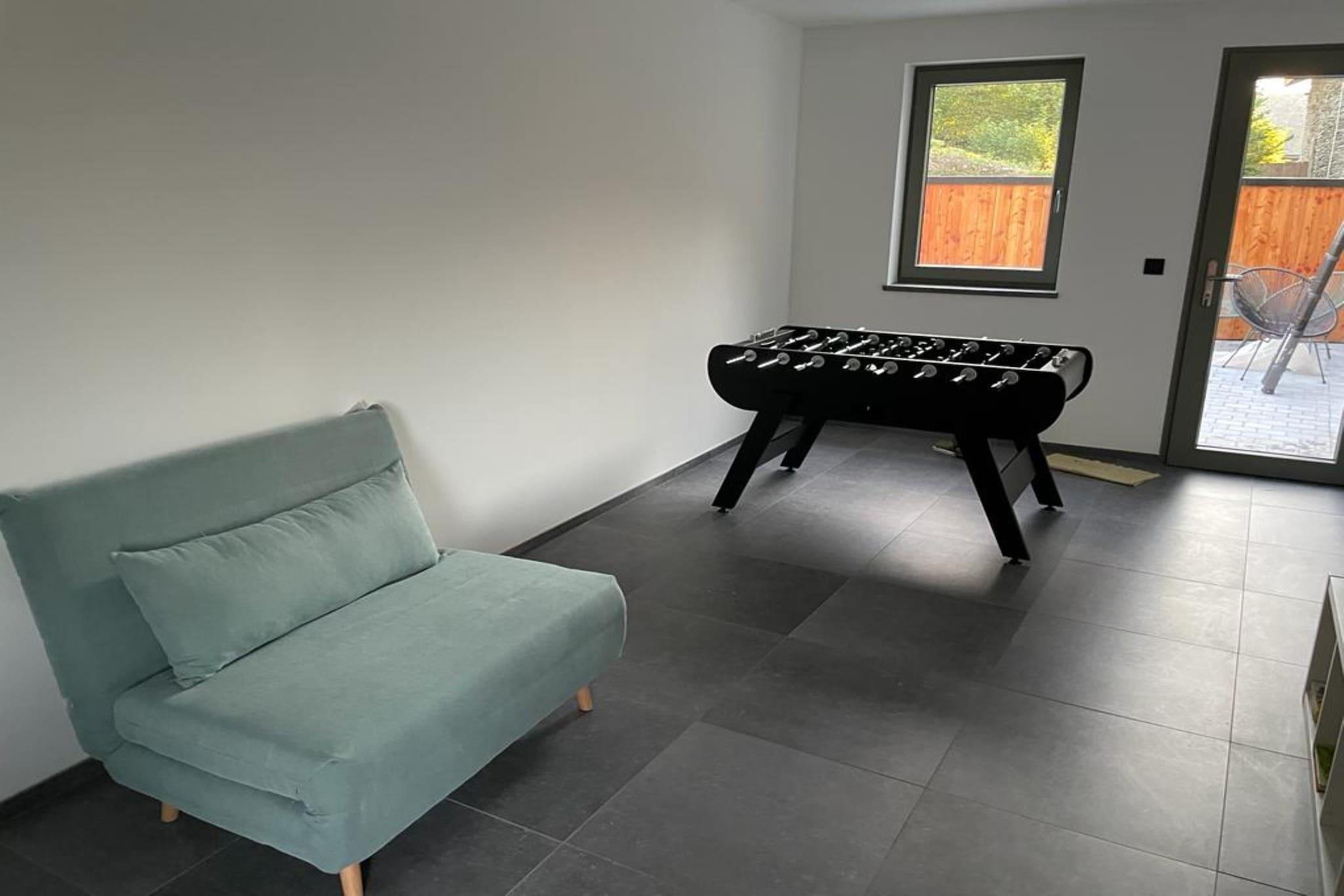 Dette elegante feriehus i Vallonien tilbyder et luksuriøst tilflugtssted for familier eller venner med et raffineret interiør, rummelig have og solrig terrasse/balkon perfekt til at slappe af, mens børnene leger frit. Fordelt på to etager har boligen en komfortabel stue, spiseplads, legerum og flere soveværelser, hvilket sikrer både privatliv og samvær. Beliggende kun 200 m fra Six-Planes Forest, er det ideelt til naturskønne vandreture og vandreture gennem en af Valloniens mest charmerende stier. For vandelskere venter vandsport kun 5 km væk, og en fredelig flodbred ligger 6 km fra hjemmet, perfekt til en picnic eller en stille eftermiddag. Essentials er inden for rækkevidde, med et supermarked få skridt væk og den nærmeste bymidte kun 6 km for shopping og lokal kultur. Efter en dag med udforskning kan du fyre op for grillen på terrassen og spise al fresco under stjernerne. For madelskere tilbyder ædelstene i nærheden som La Table d'Antonio i Dinant eller Le Bonheur i Ciney raffineret belgisk og asiatisk fusionskøkken.
