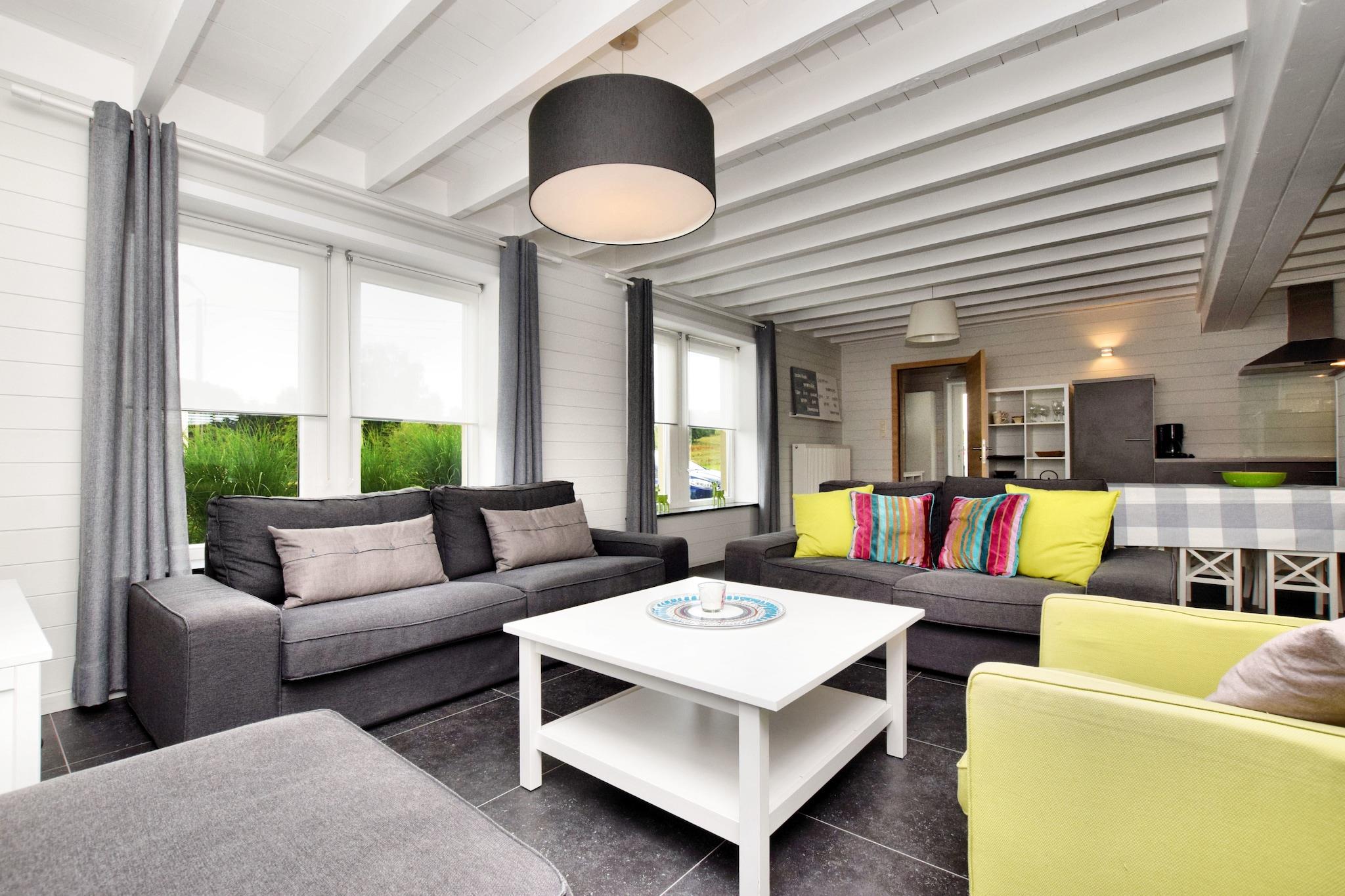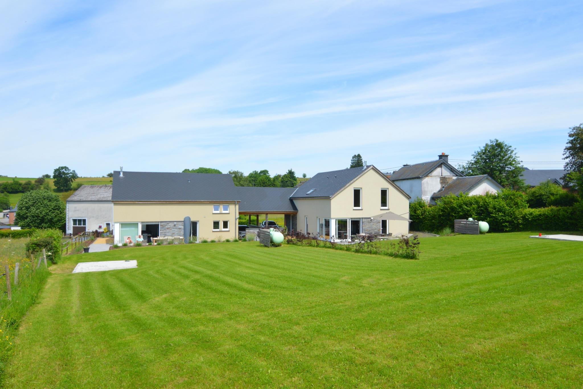 Dette skønne feriehus ligger nær Houffalize og har 4 soveværelser. Huset er ideelt til en familieferie eller 2 familier. Efter en lang dag kan du slappe af i saunaen. Fra stuen kan du nyde den vide udsigt gennem de store vinduespartier, i landsbyen finder du butikker og restauranter. Den aktive turist kan nyde regionen, med mere end 100 kilometer stier til vandreture og mountainbiking. Dejligt at besøge i området er Achouffe-bryggeriet (7 km), Rock Hérou (14 km) eller bisonfarmen i Recogne (16 km). Durbuy (47 km), den mindste by i verden, er også et besøg værd. Om vinteren kan du stå på ski og langrend i Baraque de Fraiture (15 km). * Af hensyn til roen udlejes dette feriehus ikke til grupper af unge. * Det er ikke tilladt at arrangere studenterfester, polterabender, drukfester her i huset. * Det er ikke muligt at ankomme før kl 16. Der vil blive pålagt et tillæg på 20 euro, hvis ankomsttidspunktet ikke overholdes.