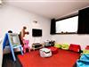 Stueetage: (entre, sofastue(12 personer)(Fjernsyn, kakkelovn(træ), DVD-afspiller, radio, CD-afspiller), spisestue(spisebord(30 personer)), Køkken(komfur(glaskeramisk), kaffemaskine(kaffetragt, kaffepude), ovn(grill-ovn), mikrobølgeovn, opvaskemaskine , køleskab, fryser, 2x barnestol), Soveværelse med badeværelse(2x enkeltseng(dynebetræk), bruser, håndvask), Soveværelse med badeværelse(2x enkeltseng(dynebetræk), bruser, håndvask), Soveværelse med badeværelse(2x enkeltseng(dynebetræk), bruser, håndvask), toilet, toilet, toilet, toilet, toilet, toilet, legeværelse(Fjernsyn, DVD-afspiller), opholdsrum(Fjernsyn, stereoanlæg, bar, køleskab)) På 1. etage: (Soveværelse med badeværelse(2x enkeltseng, bruser, håndvask, toilet), Soveværelse med badeværelse(2x enkeltseng(dynebetræk), bruser, håndvask, toilet), Soveværelse med badeværelse(2x enkeltseng(dynebetræk), bruser, håndvask, toilet), Soveværelse med badeværelse(2x enkeltseng(dynebetræk), bruser, håndvask, toilet), Soveværelse med badeværelse(2x enkeltseng(dynebetræk), bruser, håndvask, toilet), Soveværelse med badeværelse(2x enkeltseng(dynebetræk), bruser, håndvask, toilet), Soveværelse med badeværelse(2x enkeltseng(dynebetræk), bruser, håndvask, toilet), Soveværelse med badeværelse(2x enkeltseng(dynebetræk), bruser, håndvask, toilet), Soveværelse med badeværelse(2x enkeltseng(dynebetræk), bruser, håndvask, toilet), Soveværelse med badeværelse(2x enkeltseng(dynebetræk), bruser, håndvask), Soveværelse med badeværelse(2x enkeltseng(dynebetræk), bruser, håndvask), Soveværelse med badeværelse(2x enkeltseng, bruser, håndvask, toilet), toilet) Kælderetage: (legeværelse(Fjernsyn, bordfodbold, dart, biljard)) Gæsteophold Stueetage: (entre, toilet, sauna(6 personer), Bubble bath, 3x bruser, swimmingpool(privat, indendørs, 7 x 3 m.)) Gæsteophold På 1. etage: (toilet, stereoanlæg, møder(30 pers.sitting), projektor) pejs, Bubble bath, sauna, vaskemaskine, varme(central), terrasse, have(indhegnet), havemøbler, solstole, grill, parkering, Parasol, petanquebane, bordtennisbord, barneseng