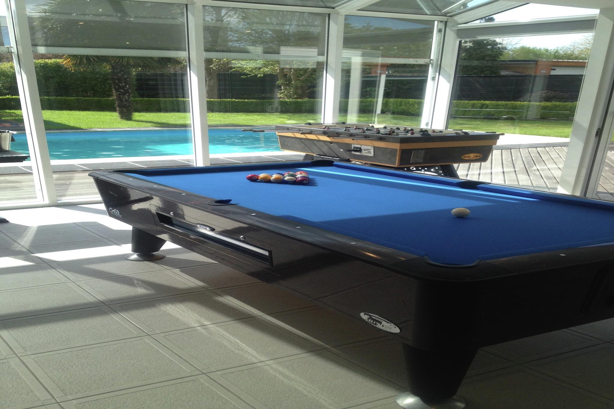 Stueetage: (entre, Stue(Fjernsyn(digital), stereoanlæg), Køkken(radio, komfur(glaskeramisk), ovn, combi-mikroovn, opvaskemaskine , køle-fryseskab), badeværelse(bruser, toilet), toilet, havestue/veranda) På 1. etage: (soveværelse(7x enkeltseng), soveværelse(3x enkeltseng), soveværelse(3x enkeltseng), soveværelse(2x enkeltseng), badeværelse(radio, badekar, bruser, 2x håndvask), toilet) På 2. etage: (soveværelse(2x enkeltseng), soveværelse(2x enkeltseng), soveværelse(2x enkeltseng), soveværelse(2x tremmeseng), badeværelse(bruser, håndvask, toilet)) Poolhus: (sauna(bruser)) opholdsrum, bar, kaffemaskine, mikrobølgeovn, badekar eller bruser, sauna, vaskemaskine(deles med andre gæster), varme, terrasse, have, cykelopbevaring, havemøbler, solstole, grill, parkering, liggestole, Parasol, swimmingpool(privat, 9 x 4 m., opened from May upto and including Sep), bordtennisbord, bordfodbold, biljard, barneseng, barnestol, strygebræt