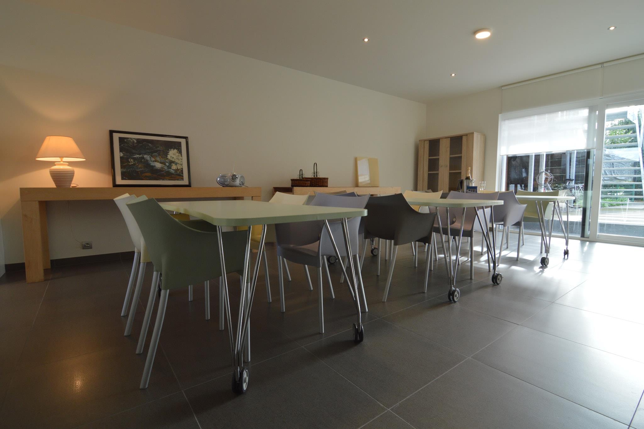 Denne moderne lejlighed ligger ved foden af de flamske Ardenner, i den smukke by Zottegem. Lejligheden ligger på første sal og har et industrielt design. Ideel til familier. Zottegem er "porten til de flamske Ardenner" og tilbyder både naturelskere og aktive fritidsinteresserede en række muligheder. Zottegem er en pulserende by med et hyggeligt centrum, hvor der altid er noget at lave. Besøg det arkæologiske museum der, eller besøg de nærliggende Oudenaarde, Kluisbergen og det burgundiske Gent. Omgivelserne er perfekte til vidunderlige gå- og cykelture (cykelopbevaring tilgængelig efter anmodning). Den rummelige stue/spisestue har plads til 14 personer, og det elegante hvide køkken inviterer jer til at lave mad sammen eller spise morgenmad. I annekset kan I spille et spil bordtennis og bagefter nyde en drink i baren. Badeværelserne er moderne, og der er legepladser til børnene. Bevar venligst stilheden og freden efter kl. 22:00 og vis hensyn til omgivelserne i løbet af dagen. På grund af ejendommens fredelige karakter udlejes den ikke til grupper af unge, der ønsker at feste. Det er forbudt at have flere personer til stede end angivet på opholdsbilletten. Parkering kan reserveres mod et gebyr.