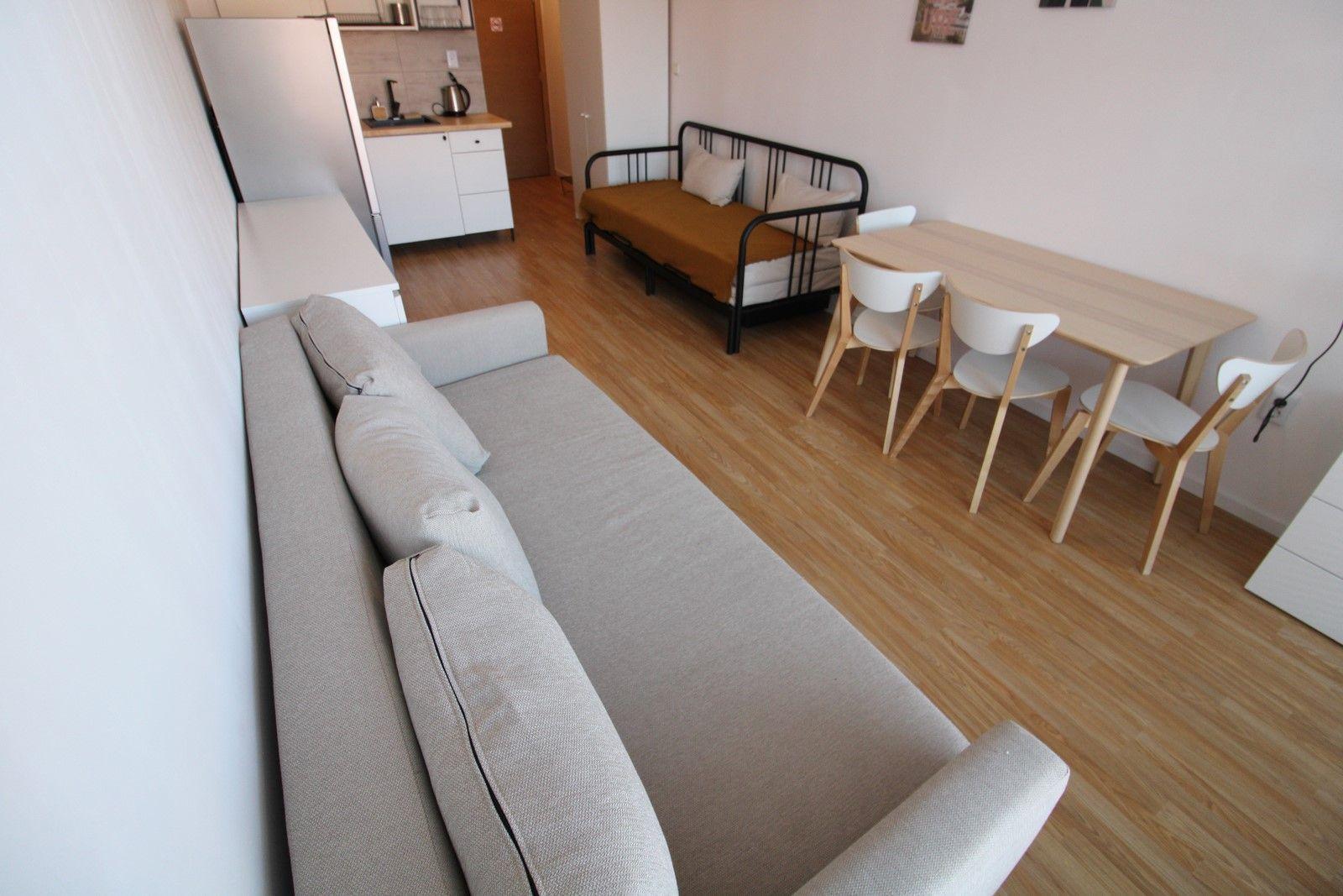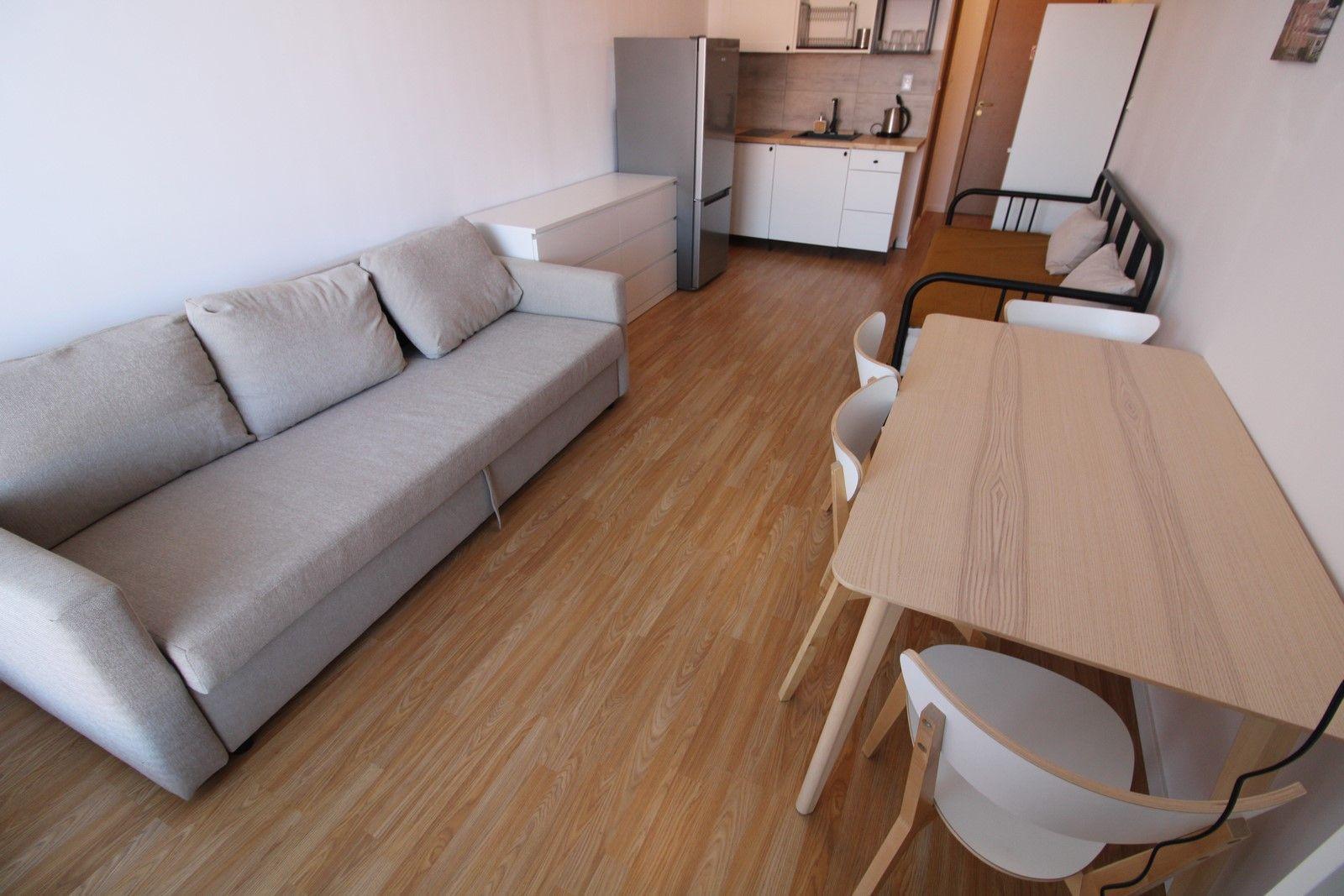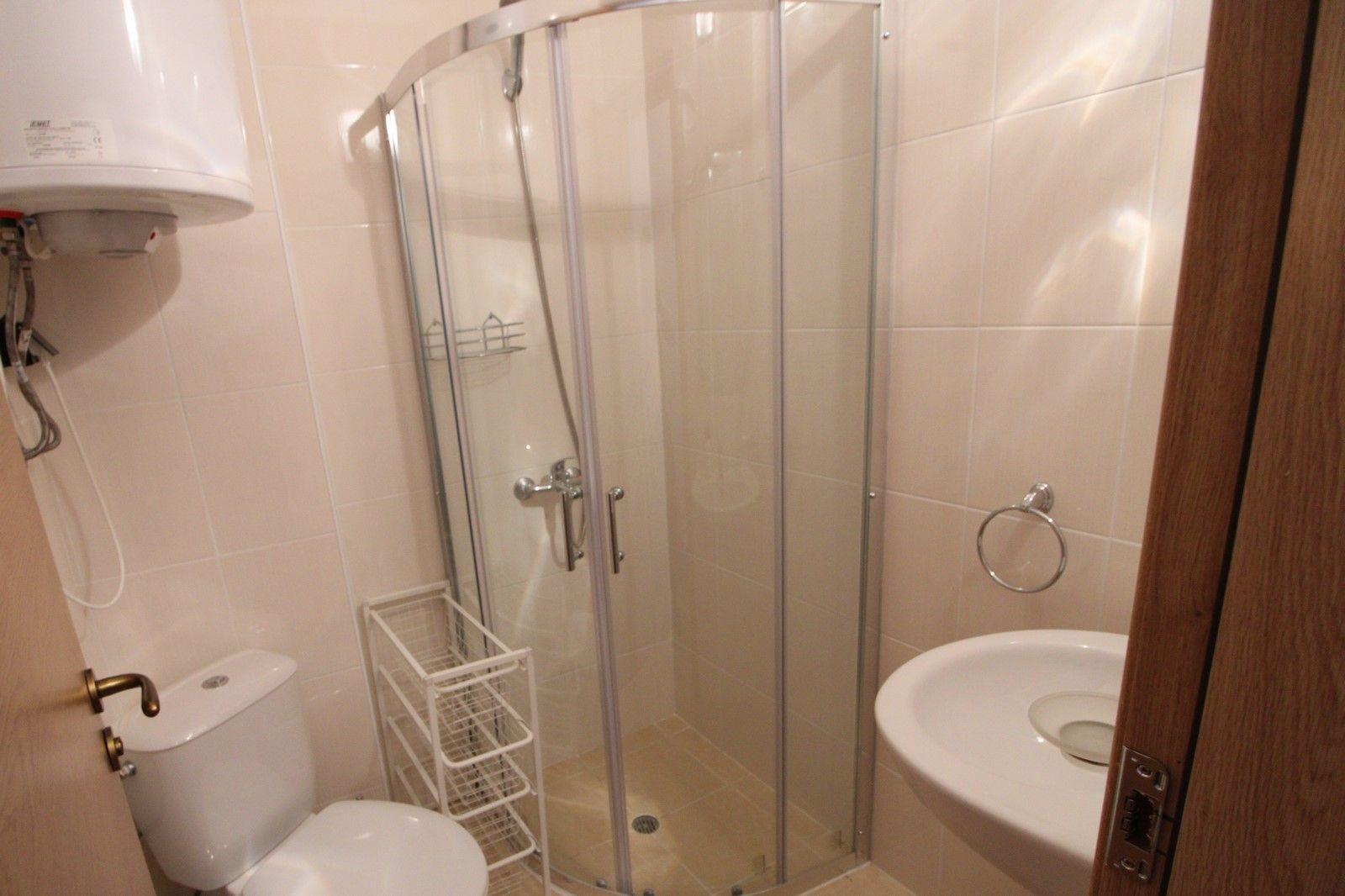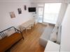 The flat is brand new and has just been decorated by the Owner. A lot of effort and heart has been put into it to make it suitable for a comfortable holiday. The warm colours of the interior create an atmosphere of relaxation. Four adults can comfortably sleep here. There is a table with chairs, a chest of drawers, a flat-screen TV and a large fridge. The kitchenette is fully equipped, including cooking fields. The flat is of course air-conditioned and the bathroom has a shower cubicle.