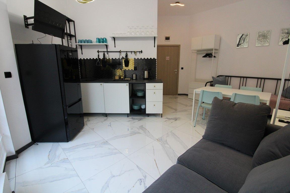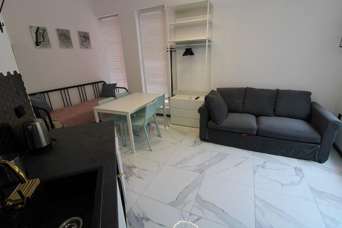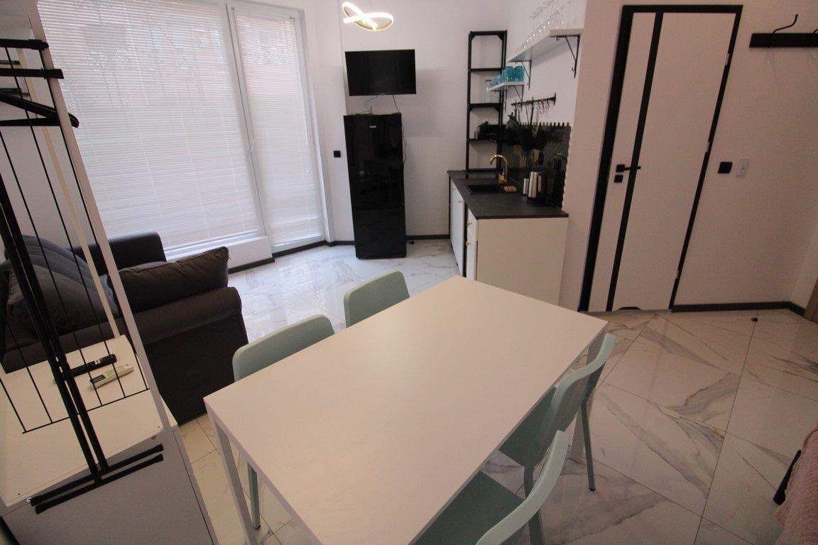 A beautiful studio into which the Owners have put a huge amount of work and heart. Take a close look at the photos and you will see that the standard of this flat is beyond the norm. Everything here is new, colour matched and practical. The beds are large, allowing 4 adults to rest. The dinner table with 4 chairs will allow you to enjoy Bulgarian specialities in comfort. The kitchenette is spacious and fully equipped, including a large fridge with freezer. A large flat-screen TV will provide entertainment in the evenings. The bathroom is clean, modern, in a black and white colour scheme, and the shower cubicle without a shower tray will be suitable even for those with limited mobility. Nothing to do but enjoy your holiday.