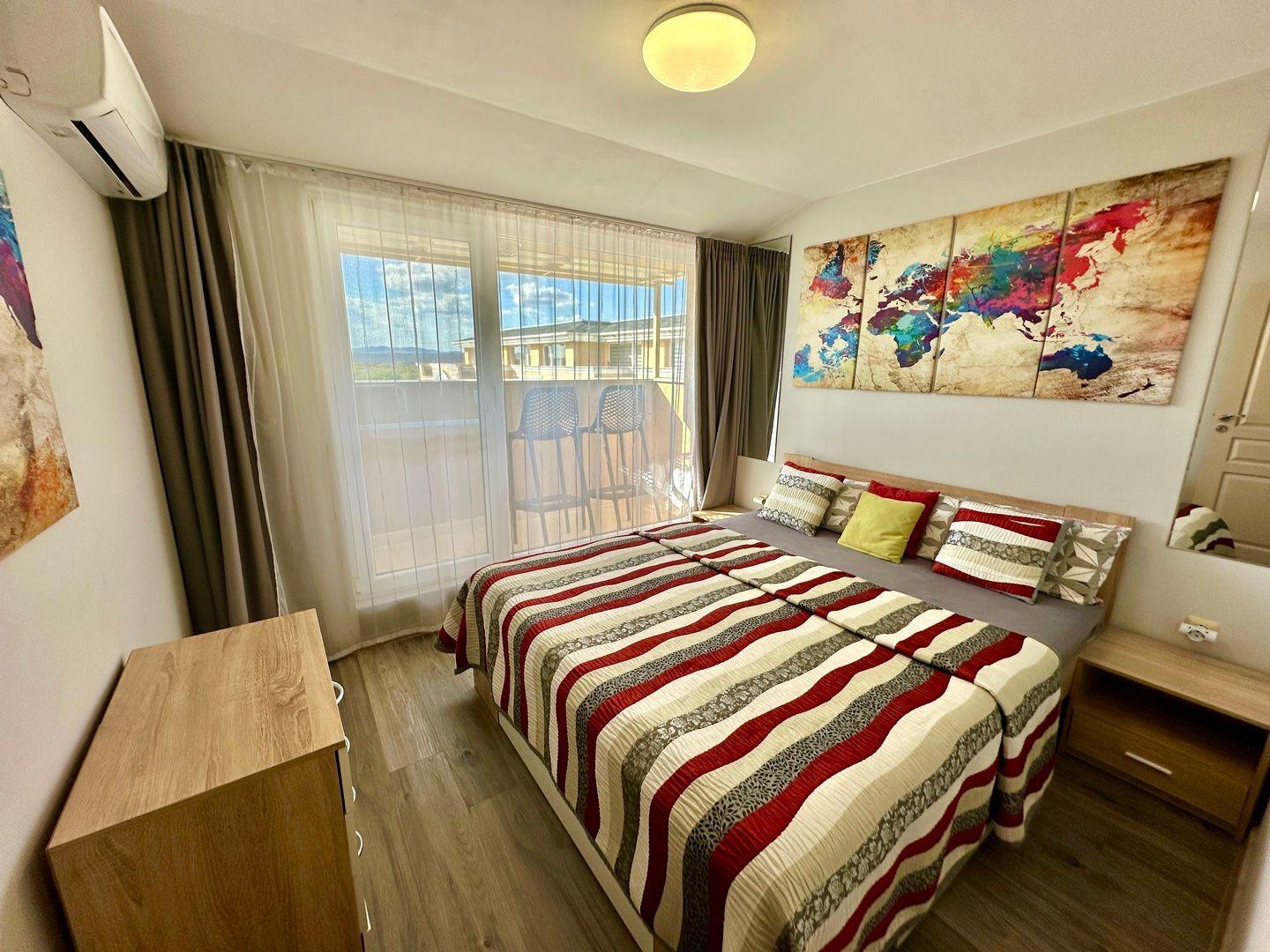 Waiting for you in the charming Messembria Palace complex in Sunny Beach, this two-bedroom flat on the sixth floor invites you to relax, offering beautiful views of the pool and being only 400 metres from the beach. Ideal for couples or small families wanting relaxation and proximity to the sea.