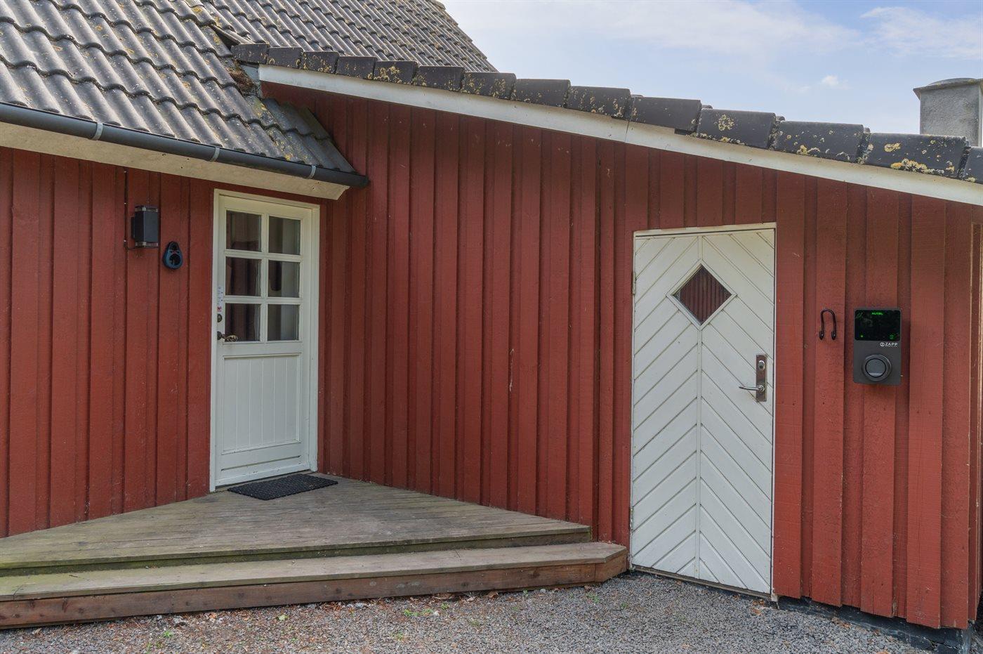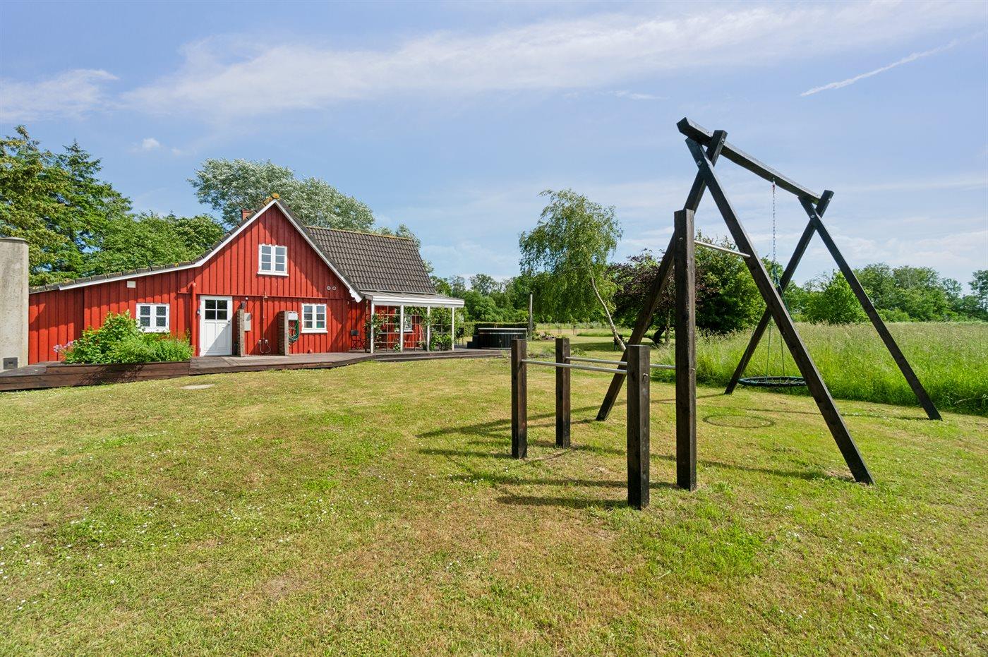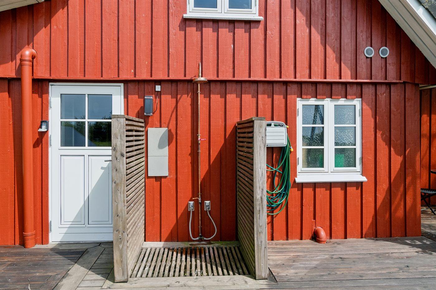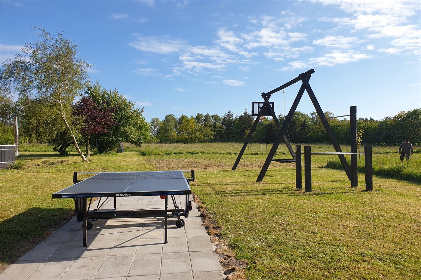 Ferieboligen er beliggende på en 22000 m² stor havegrund. Der er 3900 m til havet. Nærmeste forretning er beliggende i en afstand af 2500 m. Til ferieboligen hører 170 m² terrasseareal. Desuden er der overdækket terrasse. Gynge. Fodboldmål. Bålsted. Udendørs bruser. Grill til rådighed. Der er installeret stik til opladning af elbil. Type 2 stik. Med 11 kW ladeeffekt. Parkering ved ferieboligen.