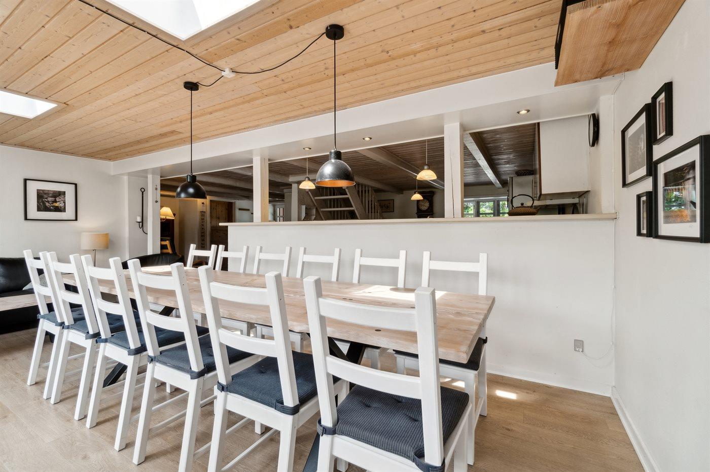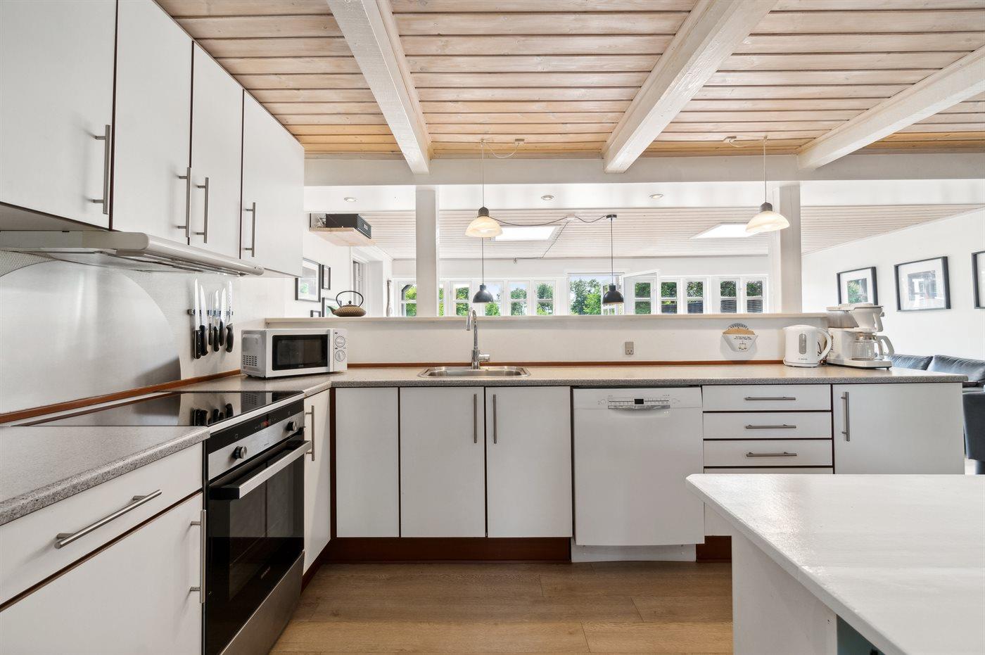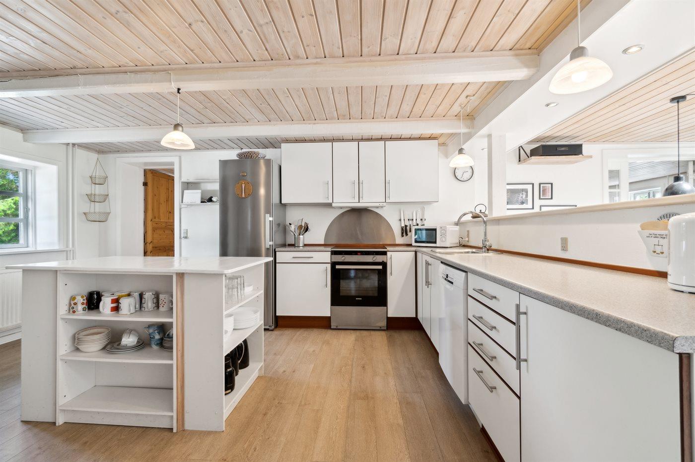 Køkkenet er udstyret med 1 køleskab. Der er 4 induktionskogeplader, varmluftovn, mikrobølgeovn samt opvaskemaskine.