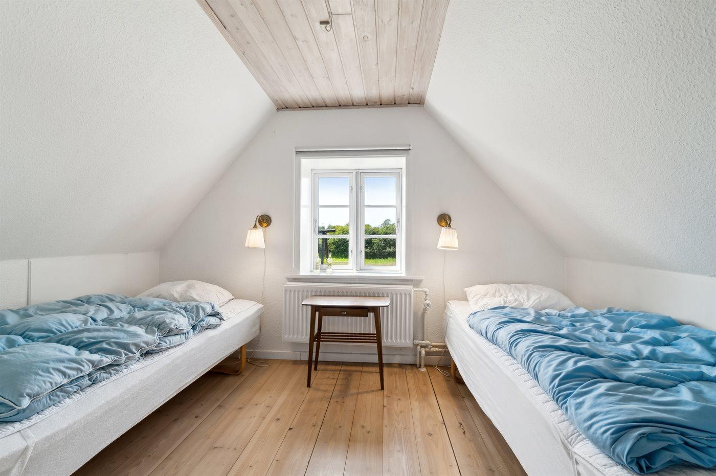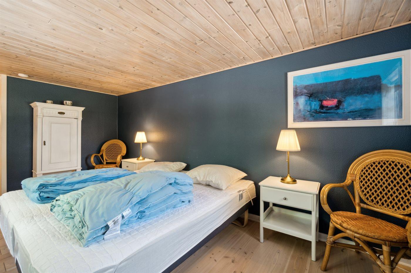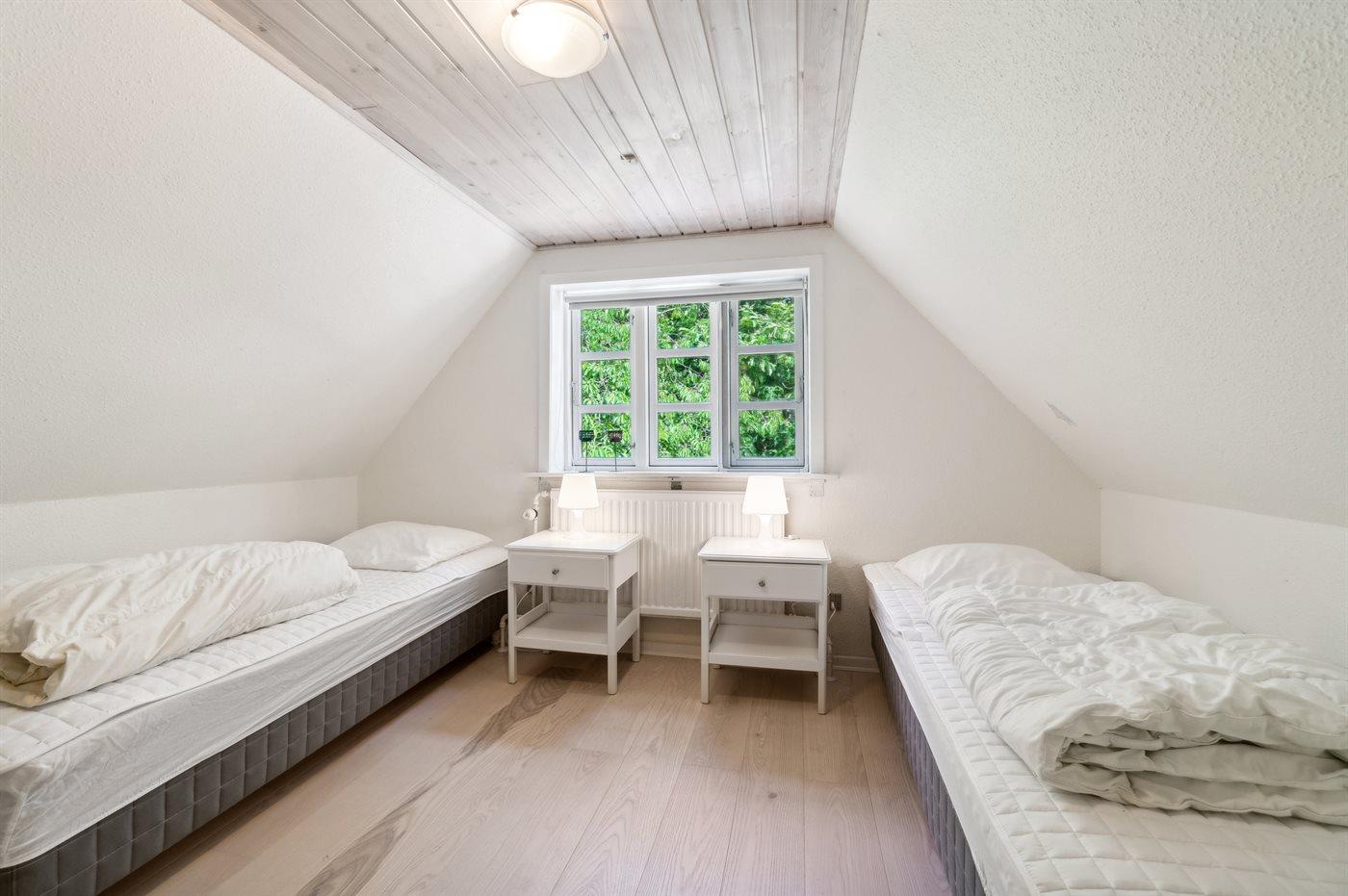 Der er i alt 6 soveværelser. Sovepladserne fordeler sig på: 8 sovepladser i dobbeltsenge. 4 sovepladser i enkeltsenge. Derudover er der 1 stk. barneseng.