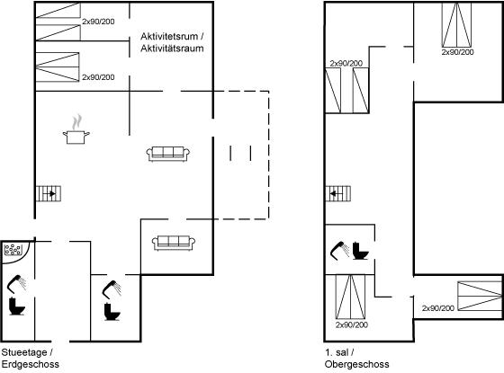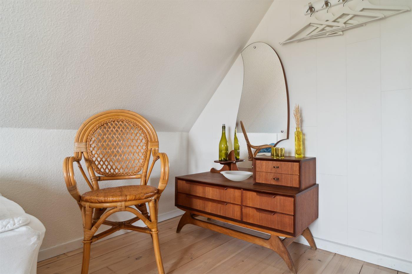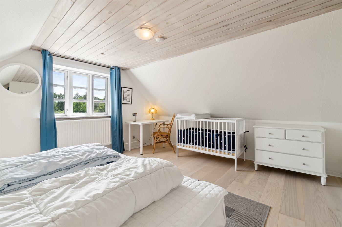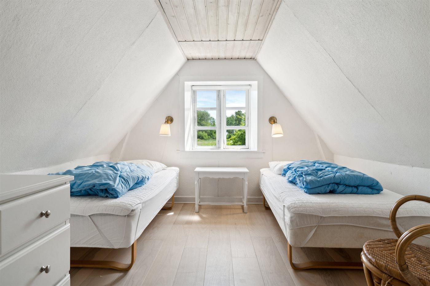 Der er i alt 6 soveværelser. Sovepladserne fordeler sig på: 8 sovepladser i dobbeltsenge. 4 sovepladser i enkeltsenge. Derudover er der 1 stk. barneseng.