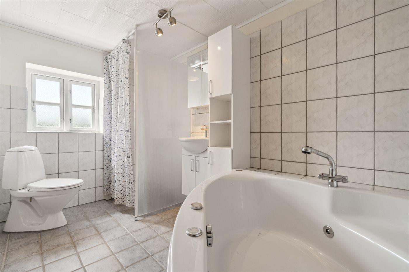 Der er 3 badeværelser med bruseniche og 2 toiletter, heraf 1 gæstetoilet. Der er gulvvarme på 1 badeværelse.