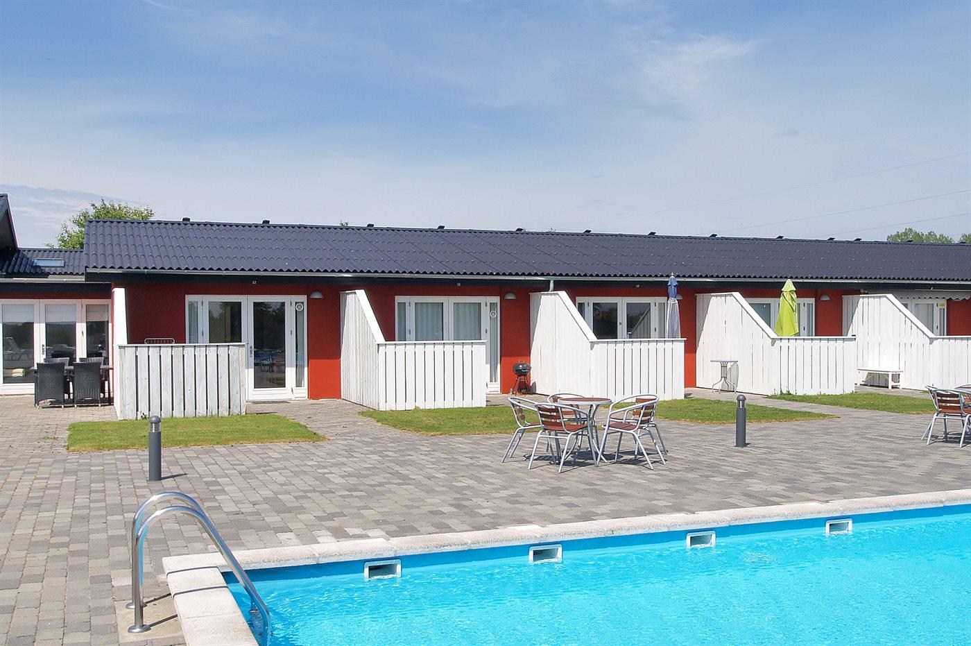 Lys ferielejlighed med egen afskærmet terrasse ud til swimmingpool. Lejligheden ligger på et fællesareal med bl.a. udendørs swimmingpool, som i perioden fra den 15/6 til 15/9 (fra kl. 8:00 til kl. 20:00) er opvarmet. På fællesarealet er der adgang til gynge, trampolin, fodboldbane og petanquebane.