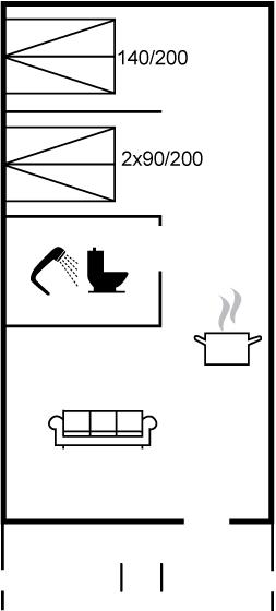Der er i alt 2 soveværelser. Sovepladserne fordeler sig på: 4 sovepladser i dobbeltsenge.
