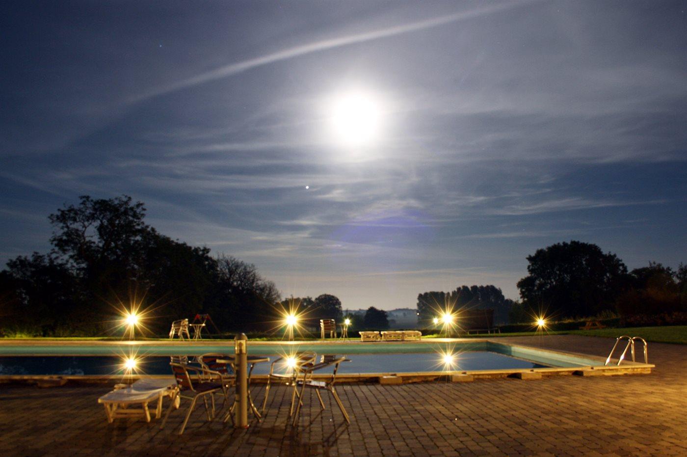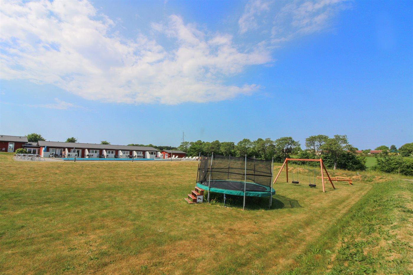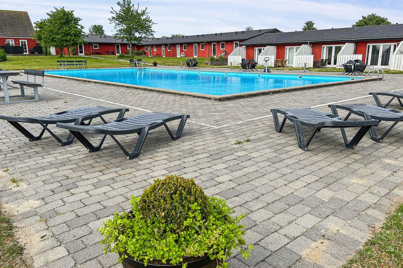 Lejligheden ligger på et fællesareal med bl.a. udendørs swimmingpool (16 x 10 x 0,7-1,8 m) samt legeplads med gynge, sandkasse og trampolin samt petanquebane og lille boldbane med fodboldmål. I perioden fra den 15/6 til 15/9 (fra kl. 8:00 til kl. 20:00) opvarmes swimmingpoolen vha. varmepumpe.