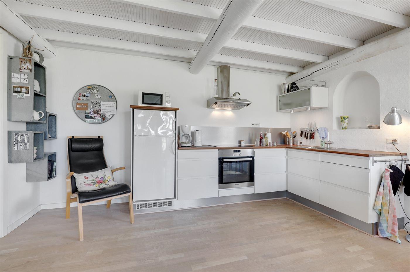 Køkkenet er udstyret med 1 køleskab. Der er 4 induktionskogeplader, varmluftovn, mikrobølgeovn.